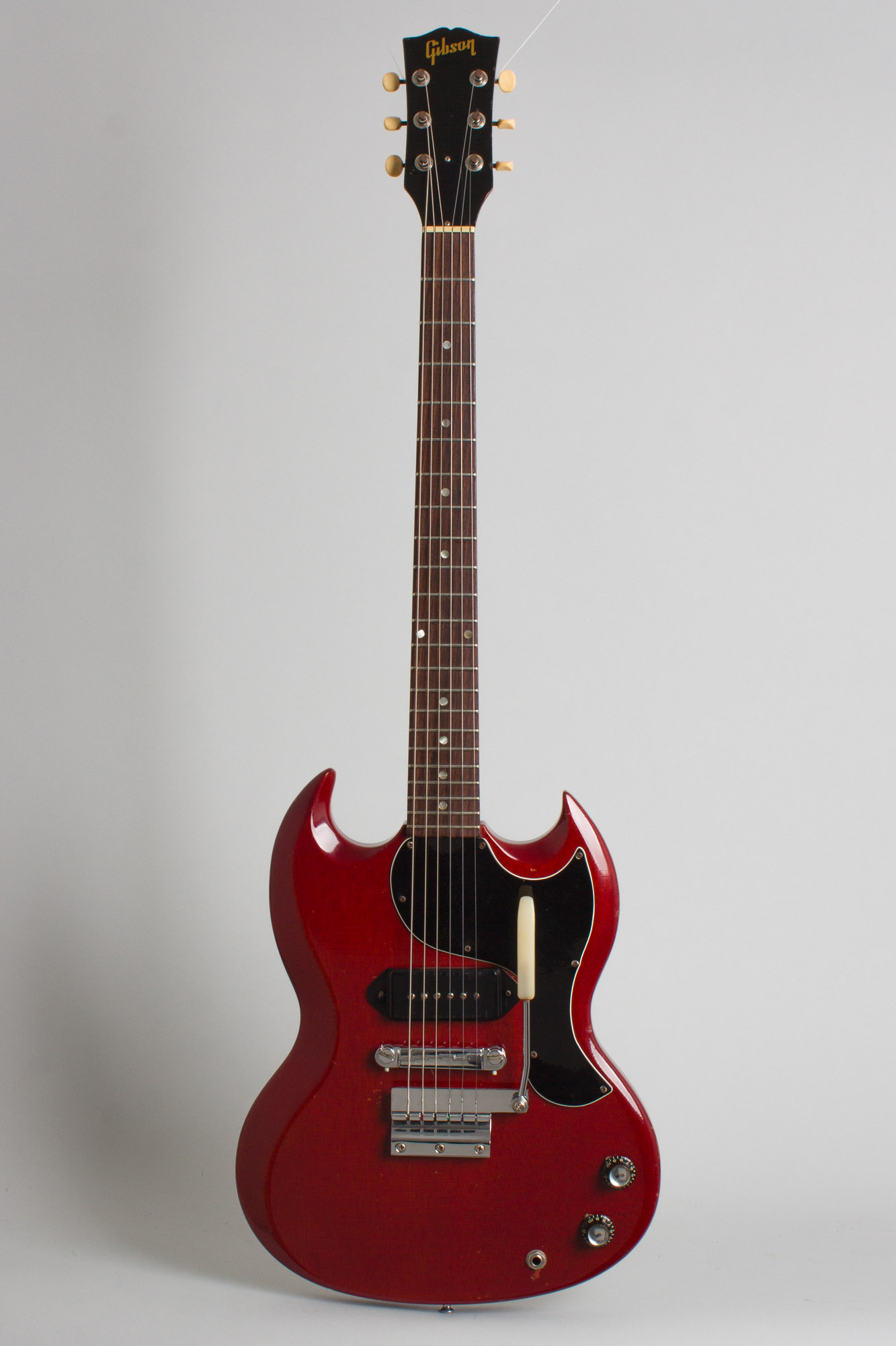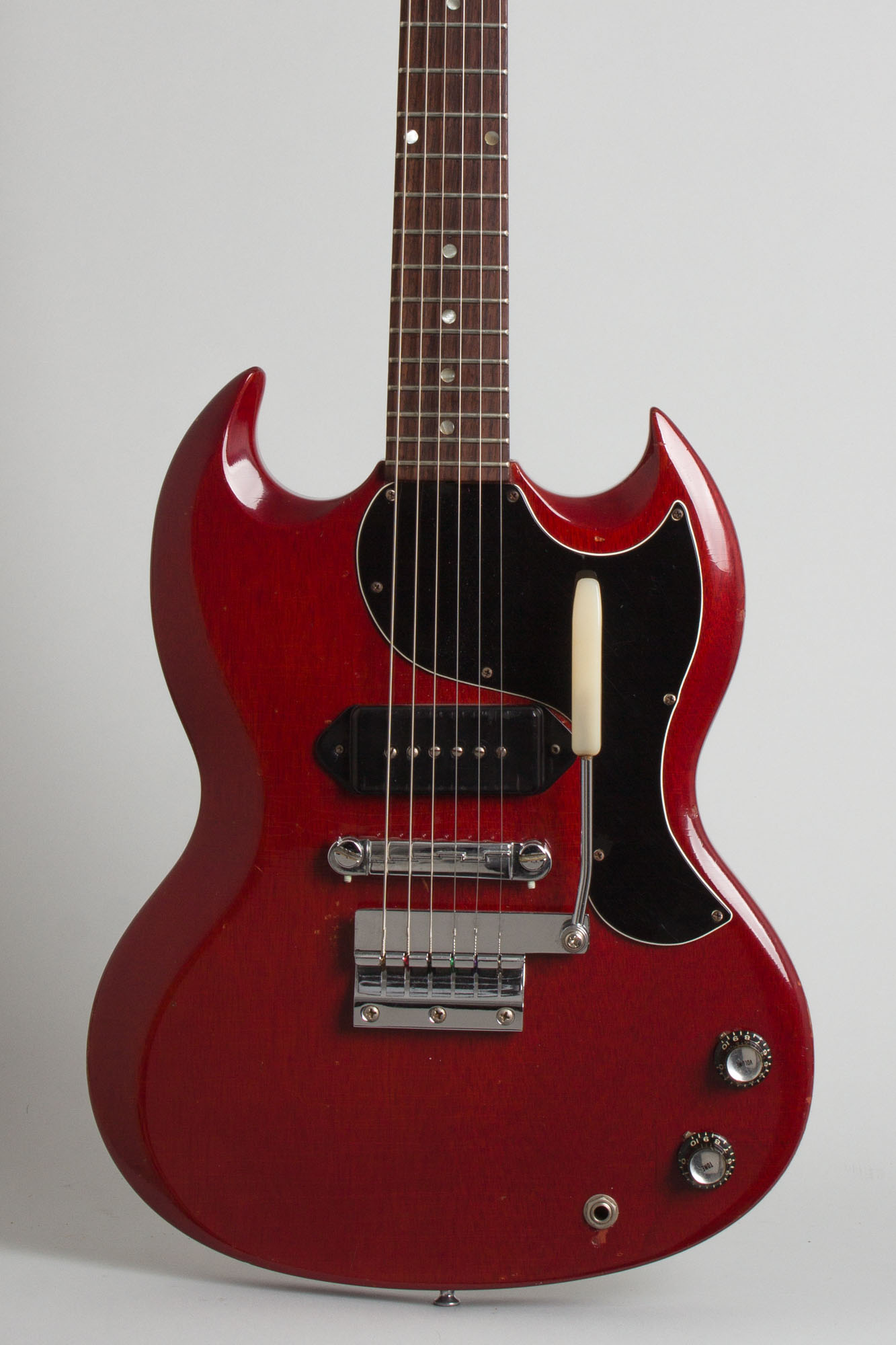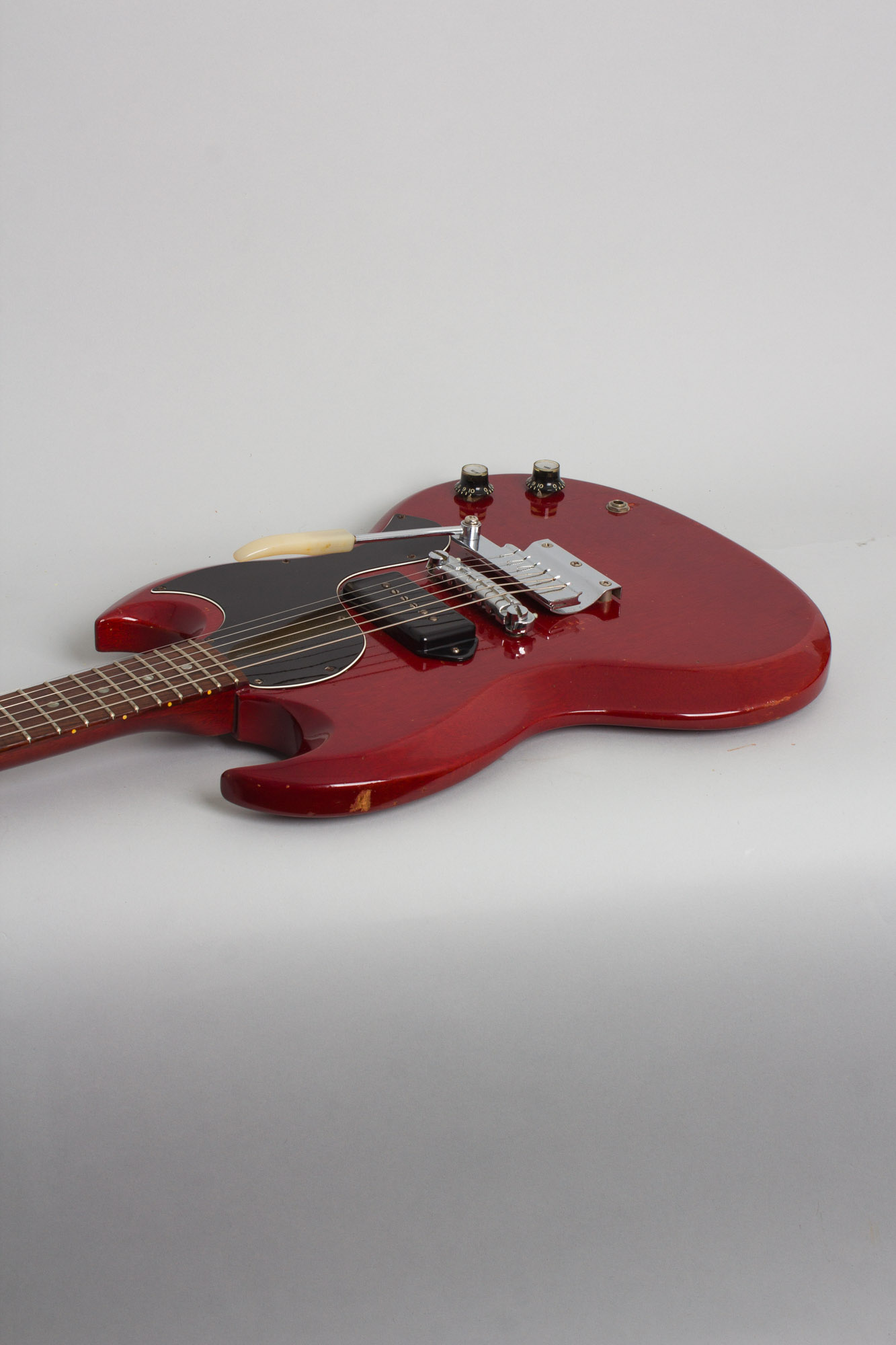 Gibson SG Junior Model Solid Body Electric Guitar (1966), made in Kalamazoo, Michigan, serial # 900745, cherry lacquer finish, mahogany body and neck, rosewood fingerboard, black tolex hard shell case.
