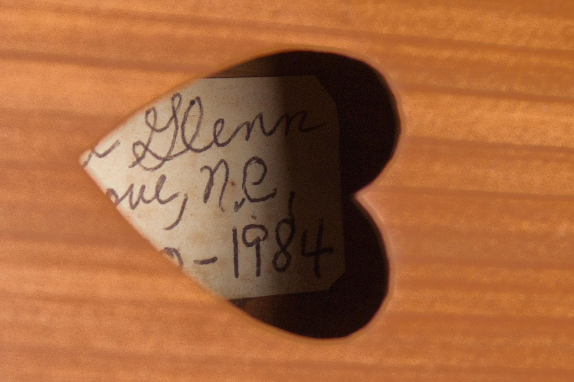 As a renewed interest in traditional folk music swelled in the nation in the 1950s following WWII, Leonard Glenn of Watauga County, North Carolina began to largely teach himself the craft of instrument making beginning with a few dulcimers and eventually mountain banjos; he would go on to be accompanied in his endeavors by his son, Clifford Glenn. Crucially, the Glenns are widely known to have built many historically significant Appalachian folk instruments for their neighbor, Frank Proffitt Sr. Proffitt is not only renowned as a builder, but as a folk performer who made a major contribution to American musical history including being featured in Alan Lomax's essential "Folk Songs of North America."