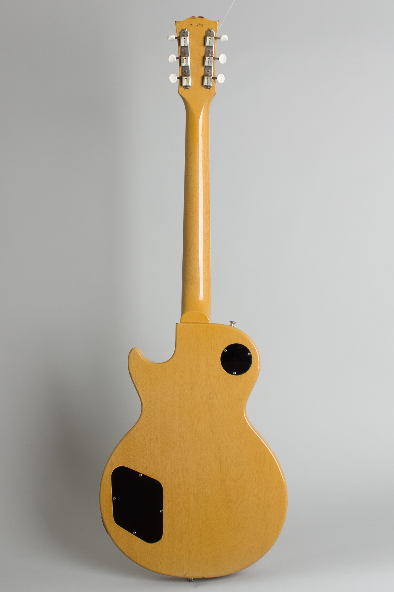 Gibson Les Paul Special Model Solid Body Electric Guitar (1957), made in Kalamazoo, Michigan, serial # 7-0770, limed mahogany finish, mahogany body and neck, rosewood fingerboard, black tolex hard shell case.