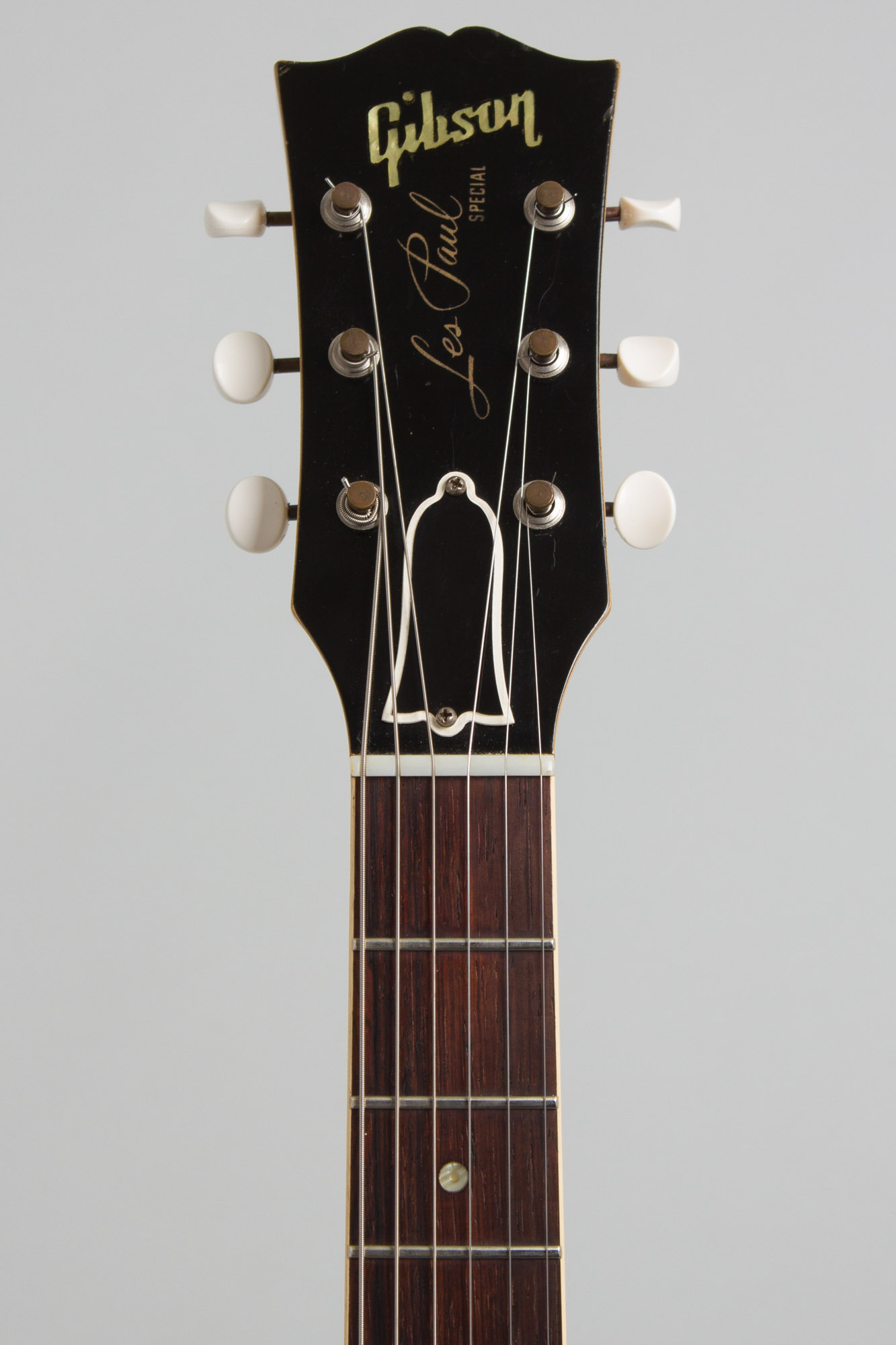 All hardware and electronics are original with untouched solder joints. The stop tailpiece has plating wear on the top, the tuners show some light corrosion and as noted the plastic buttons are not original. The jackplate is original and amazingly uncracked. The guitar has been refretted very neatly with larger frets than '57 spec; these have hardly any subsequent wear. While not original this makes for an especially excellent player (the original wire being pretty small for modern tastes) with the expected killer sound; even not plugged in this one really rings. Really this is one of the nicest we have had playability and sonically, this Special lives in a later hardshell case (most came originally in chipboard). Overall Excellent Condition.