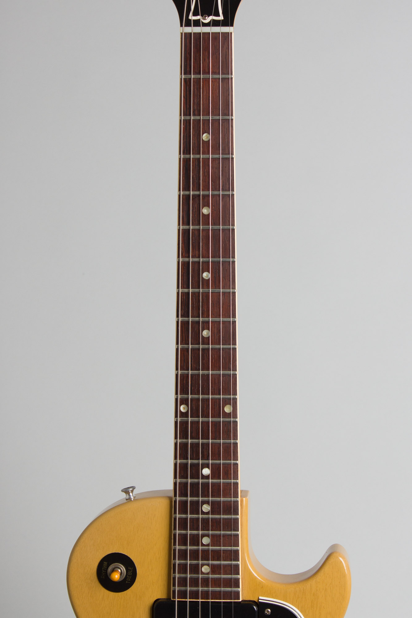 At 7.31 Lbs. this is really pretty light for one of these and it handles beautifully. The neck has a slimmer feel than many '57's, quite a bit less chunky than some with more dress-away on the sides, almost leaning into the hint of a "V. This is quite unusual for a '57 Special and feels very sleek. This is simply a great all-around guitar, one of the nicest we have had, very clean and a great player suitable for everything from rampaging Rock'n'Roll to raw blues and even twangin' country. As the iconic Gibson solidbodies from the 1950's become ever more desirable the original Special still represents the greatest value in a "Golden Era" Les Paul.
