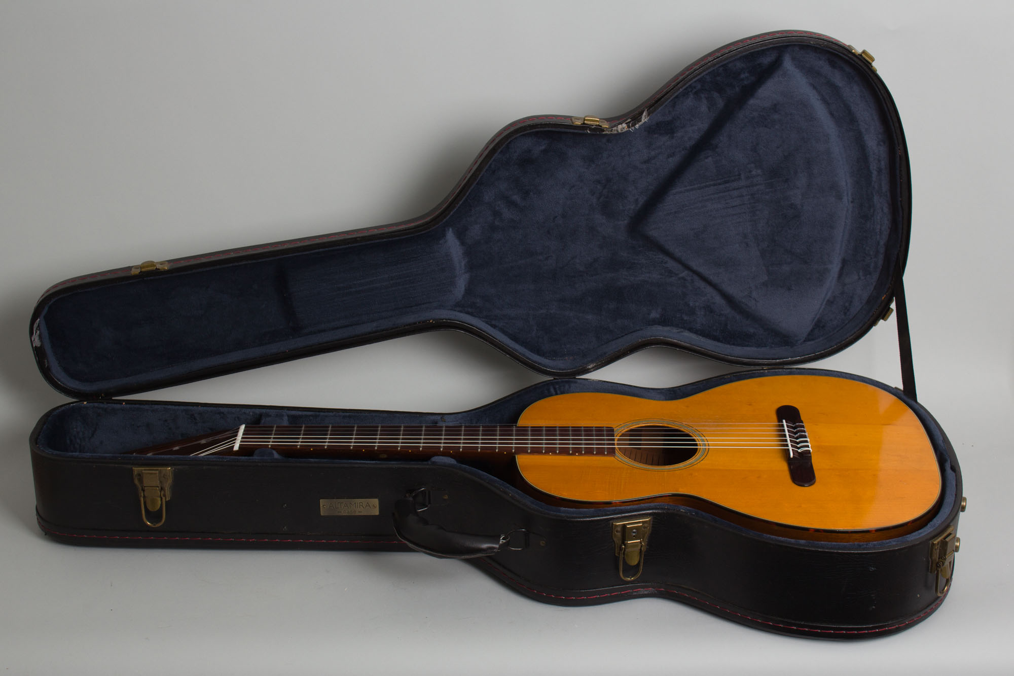 This nice-playing "C" model 00-18 guitar was the brainchild of Martin's noting the early 1960s Folk market's seemingly insatiable appetite for easy-to-play nylon string guitars. Many aspiring players of the time were not comfortable with steel-string guitars but wanted a genuine Martin, so the company created this hybrid of a 12-fret 00 model and a classical guitar that bridges the gap nicely. 1965 was the fourth production year for the model, with 425 sold at $215, plus case.