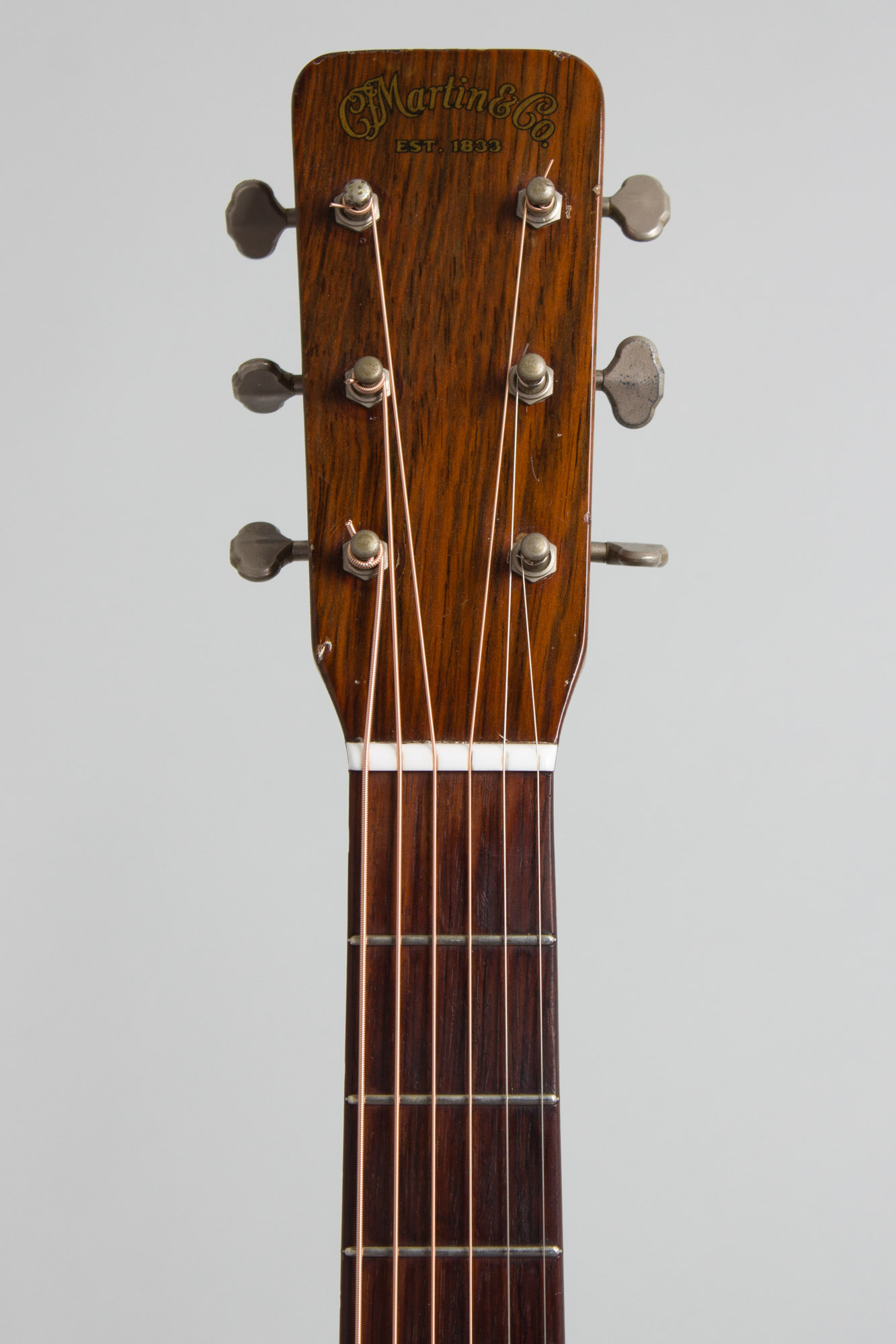 The neck has been neatly reset. The original bracing and small maple bridgeplate are intact, and the original rosewood bridge was very slightly cut down but does not appear reglued. The original frets show some very little wear. Well past its 60th birthday this guitar feels and sounds even "older" than it actually is, with a nice punchy but still mellow ring. A sweet sounding and friendly playing Martin, it has been well repaired where it was needed and played in perfectly. It is housed in a later black Tolex HSC Overall Very Good + Condition.
