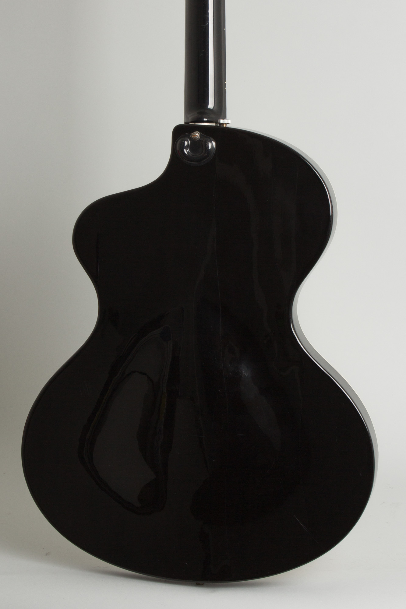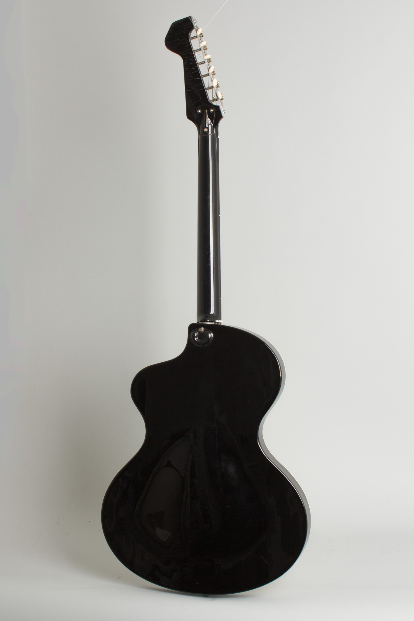 Overall length is 44 1/4 in. (112.4 cm.), 16 in. (40.6 cm.) wide at lower bout, and 1 7/8 in. (4.8 cm.) in depth, measured at side of rim. Scale length is 24 3/4 in. (629 mm.). Width of nut is 1 5/8 in. (41 mm.).