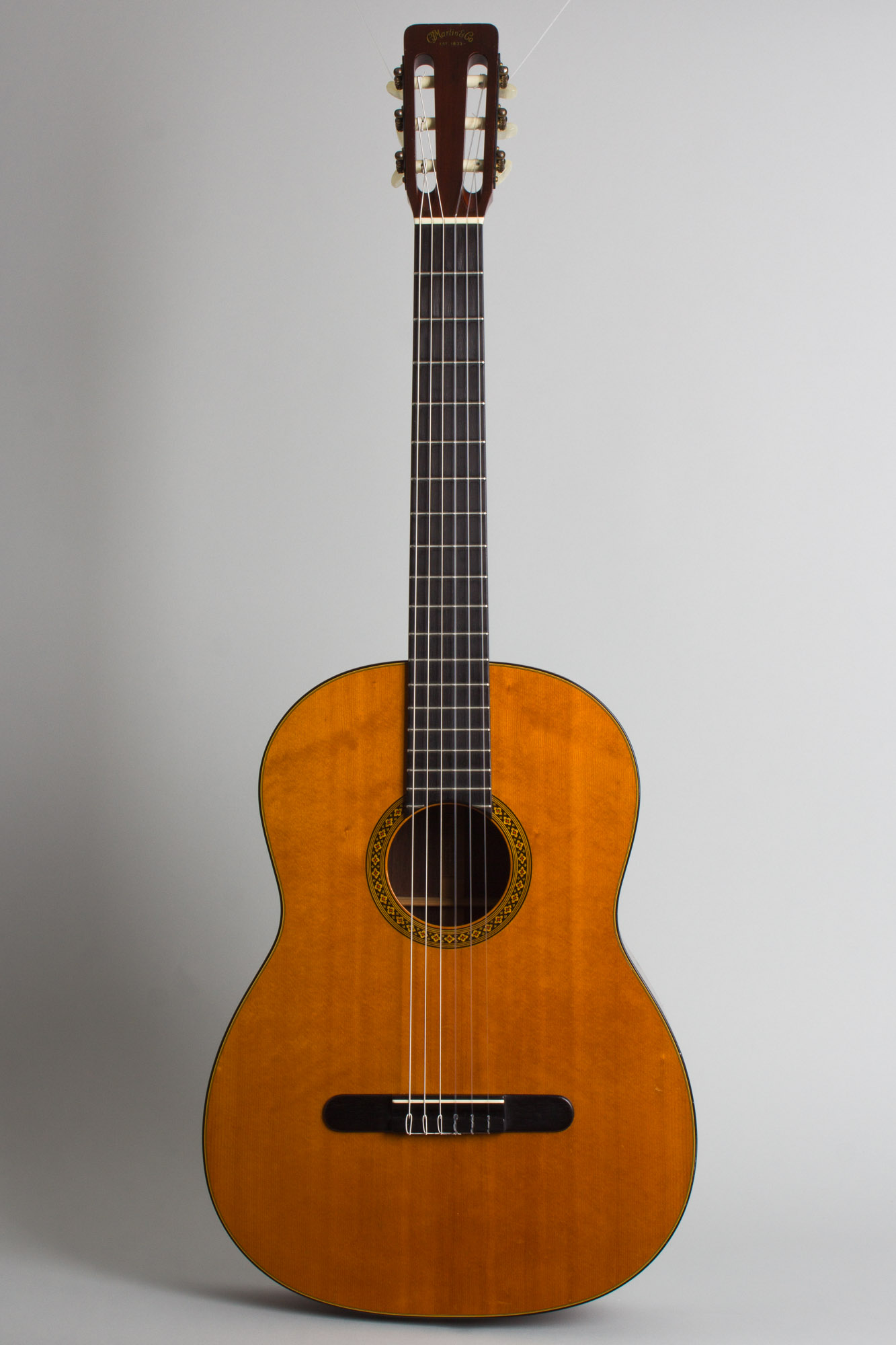 C. F. Martin N-20 Model Classical Guitar (1969), made in Nazareth, PA, serial # 245734, natural lacquer finish, Indian rosewood back and sides, spruce top; mahogany neck with rosewood fingerboard, original black hard shell case.