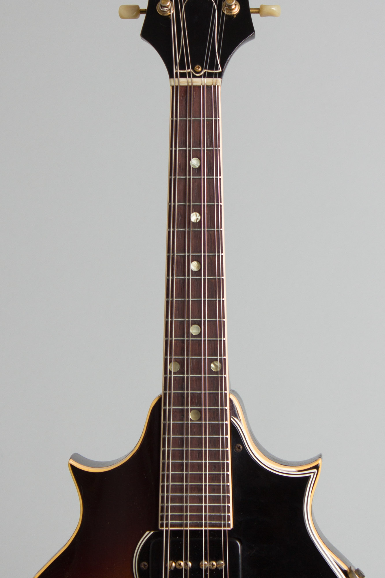 This is a nice mid-1960s example of the "Florentine", Gibson's most radical electric mandolin. Although the electric mandolin never really took off in a big way, Gibson kept trying in hopes of creating a design that would change that! Looking like an A-5 crossed with a Les Paul, this was the only solid body electric mandolin of Gibson's classic era and one of the best -- and flashiest -- electric mandos ever designed.