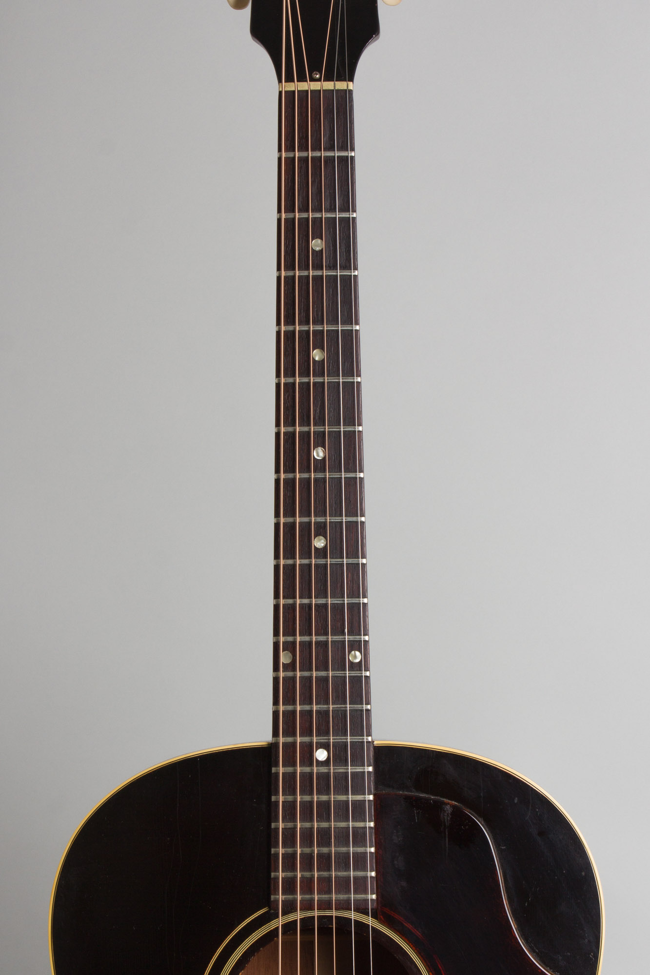 This example otherwise shows features typical for the later '60s including the new more Martin-like "belly down" rosewood bridge still with the adjustable wood saddle, a large tortoise celluloid pickguard and "double line" Kluson Deluxe strip tuners. This one does not have the Gibson logo on the pickguard as many '68s do and most likely dates to late in the year, as the newer bridge is generally considered a 1969 feature.