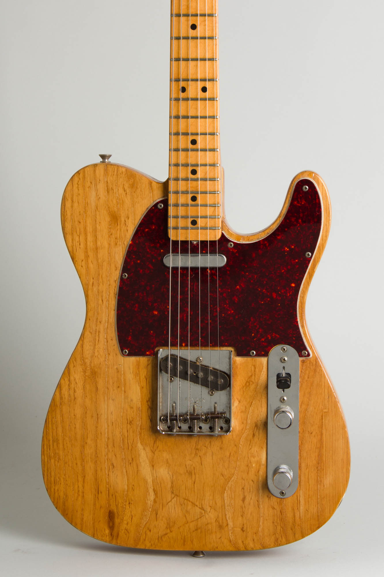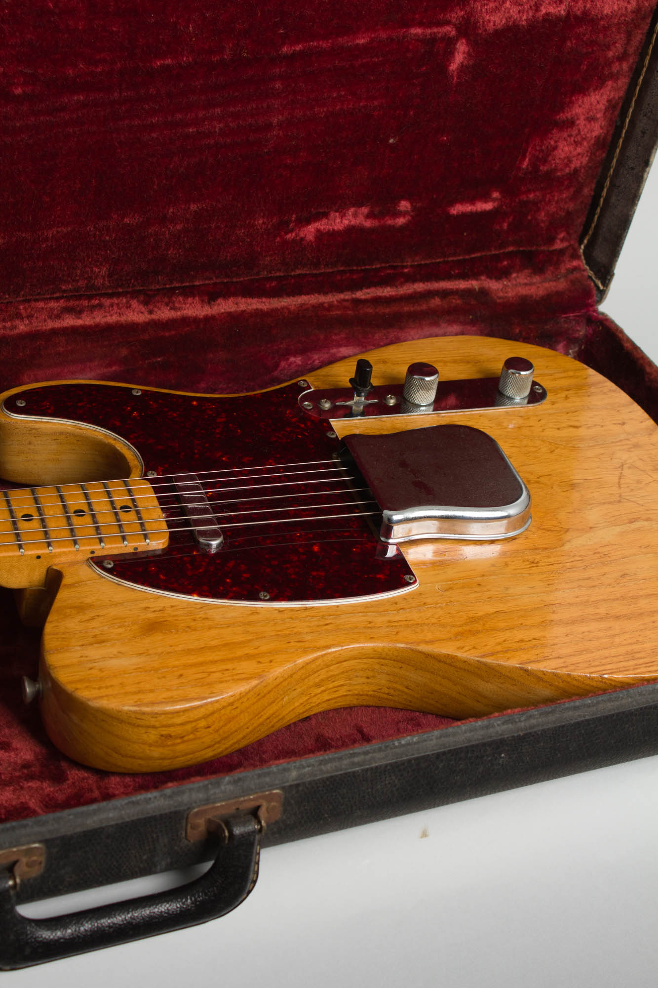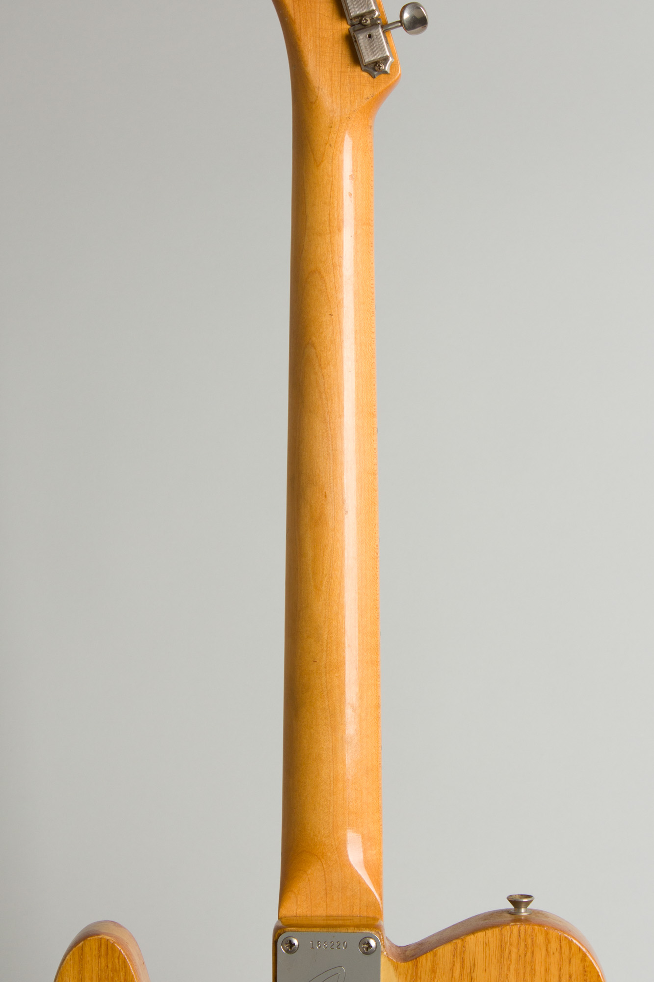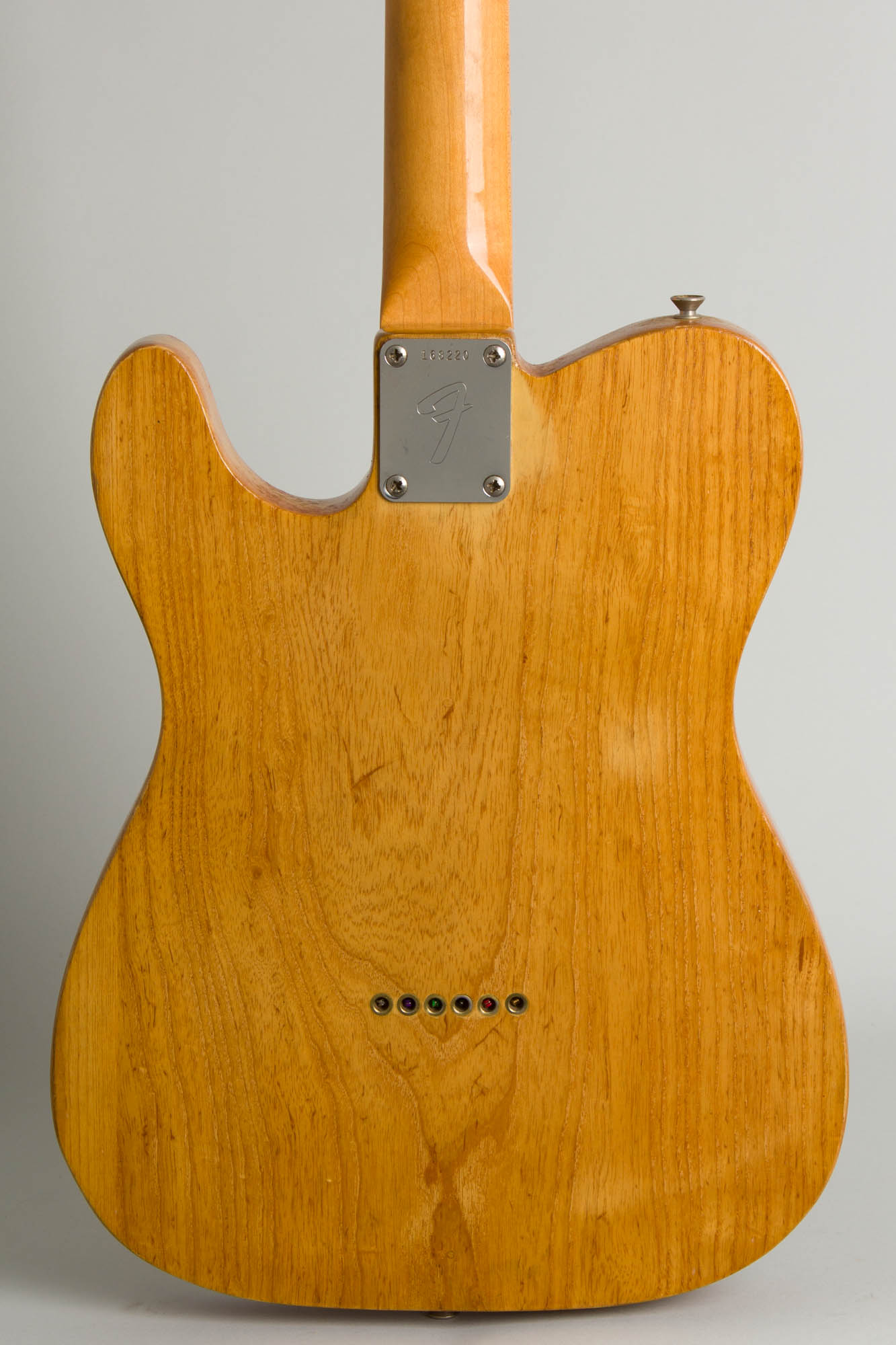 Fender Telecaster Model Solid Body Electric Guitar (1966), made in Fullerton, California, serial # 168220, natural re- finish, ash body, maple neck with maple fingerboard, black hard shell case.