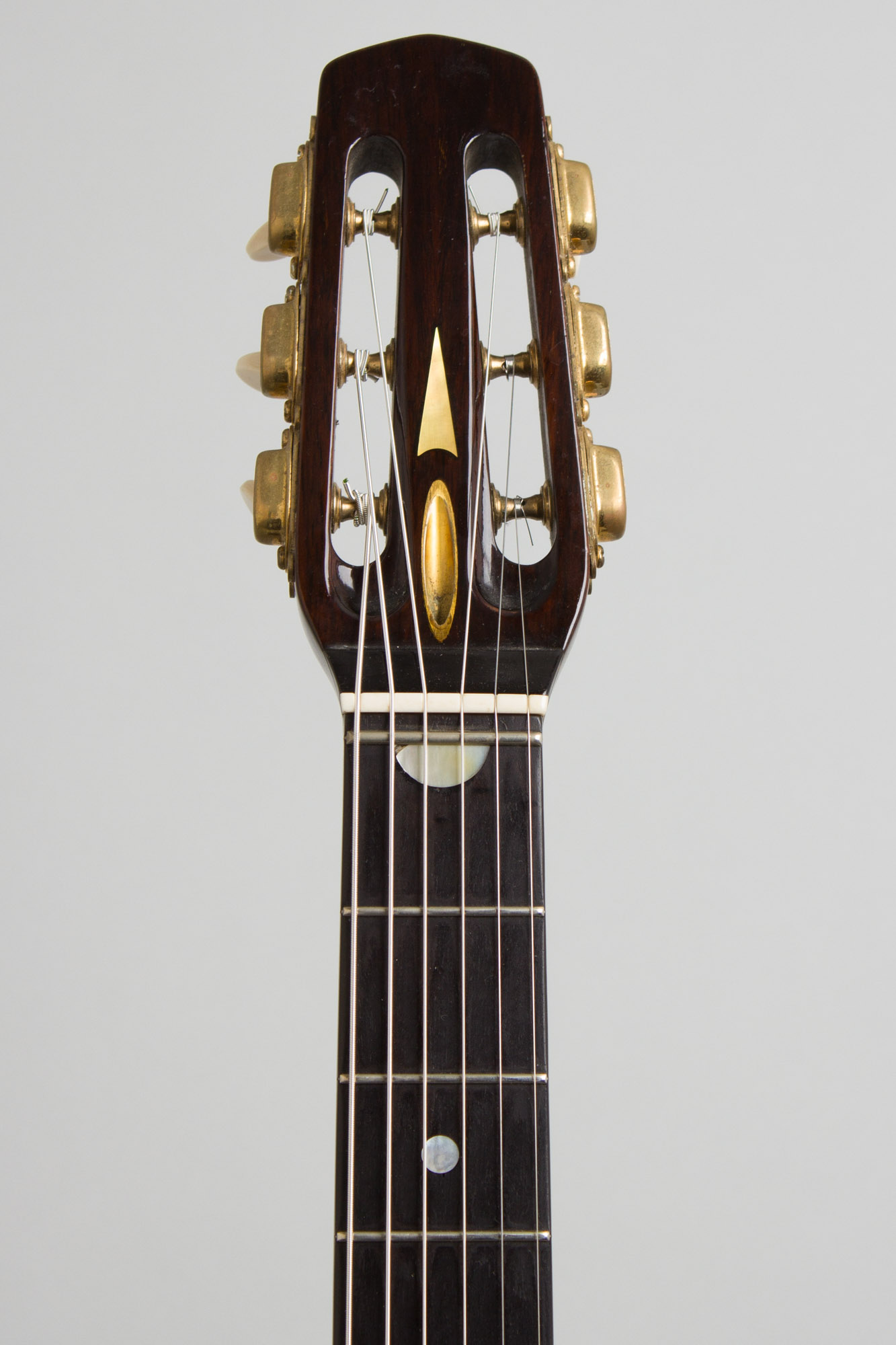 Rodrigo Shopis Gypsy Jazz Guitar (2010), made in New York City, natural finish, rosewood back and sides, spruce top, mahogany neck with ebony fingerboard, black tolex hard shell case.
