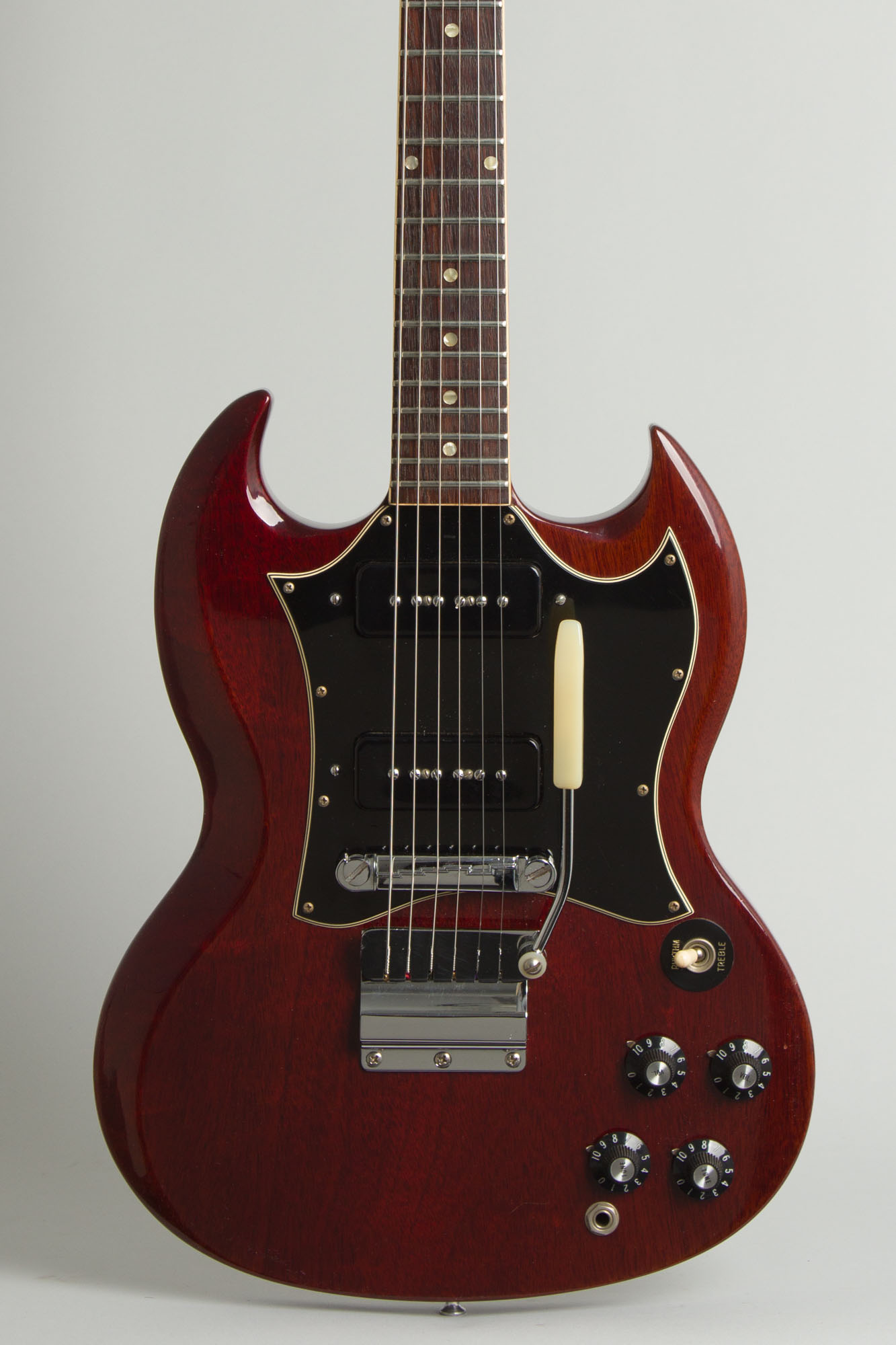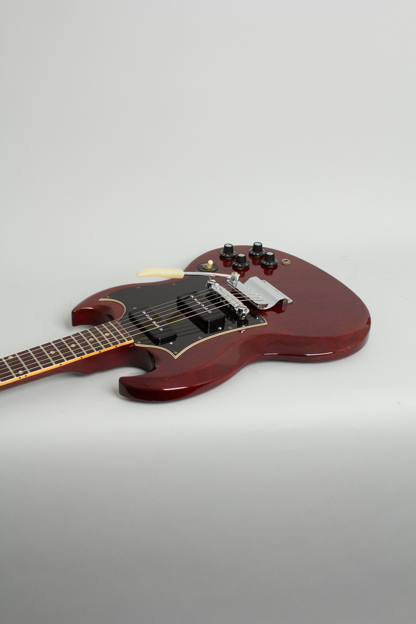 Gibson SG Special Model Solid Body Electric Guitar (1969), made in Kalamazoo, Michigan, serial # 894544, cherry lacquer finish, mahogany body and neck, rosewood fingerboard, original black tolex hard shell case.