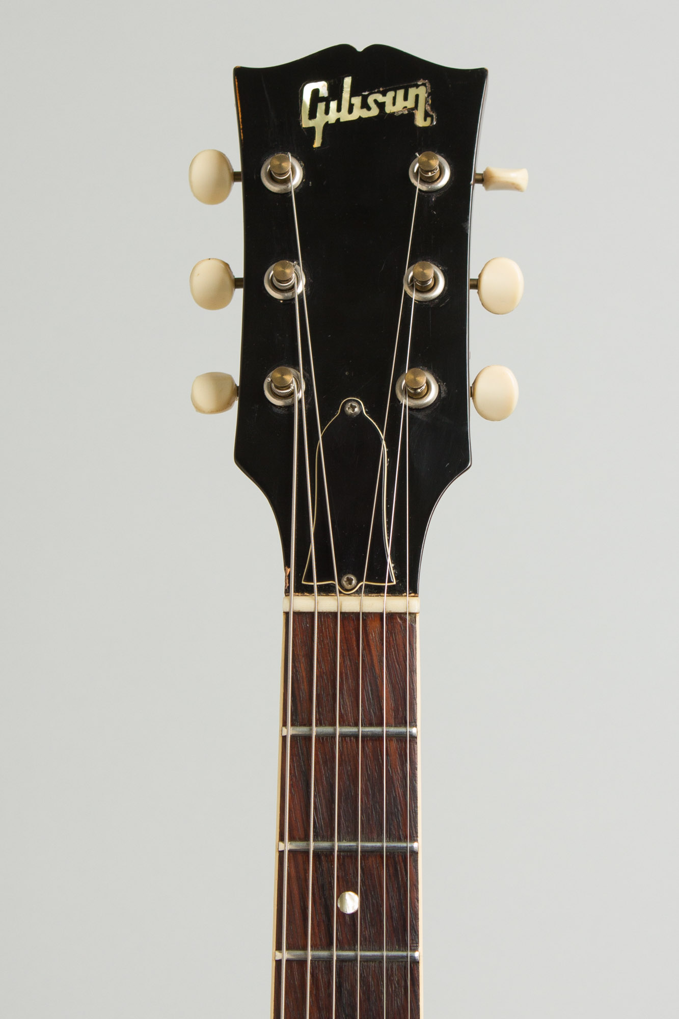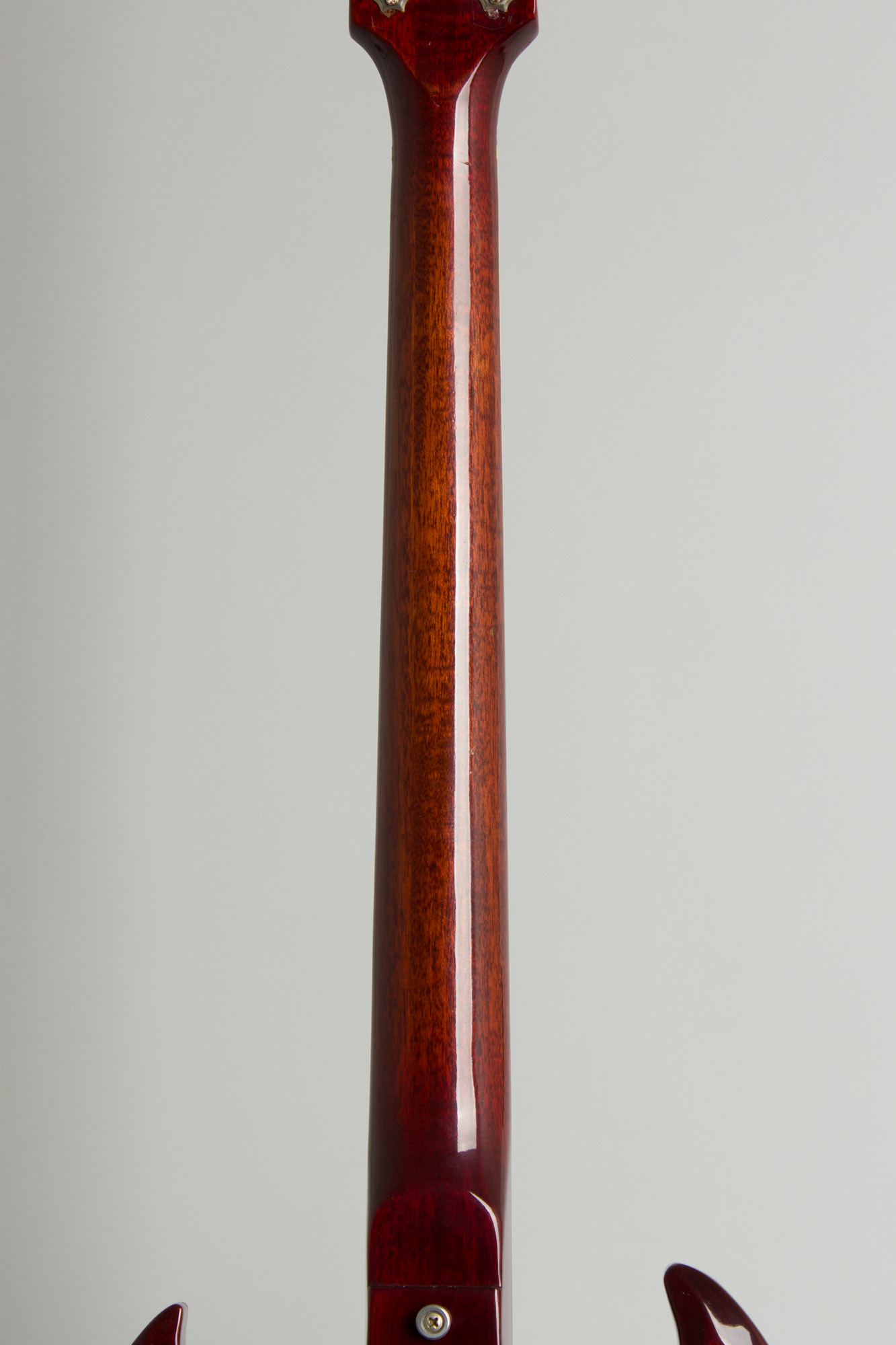 The bound, dot inlaid neck is a slim 1 9/16" at the nut as is typical of the later '60's, but gets much chunkier as it approaches the body. It also has a very early example of the first "soft" volute on the back, a new 1969 idea for Gibson at the time that would become more prominent in 1970.
