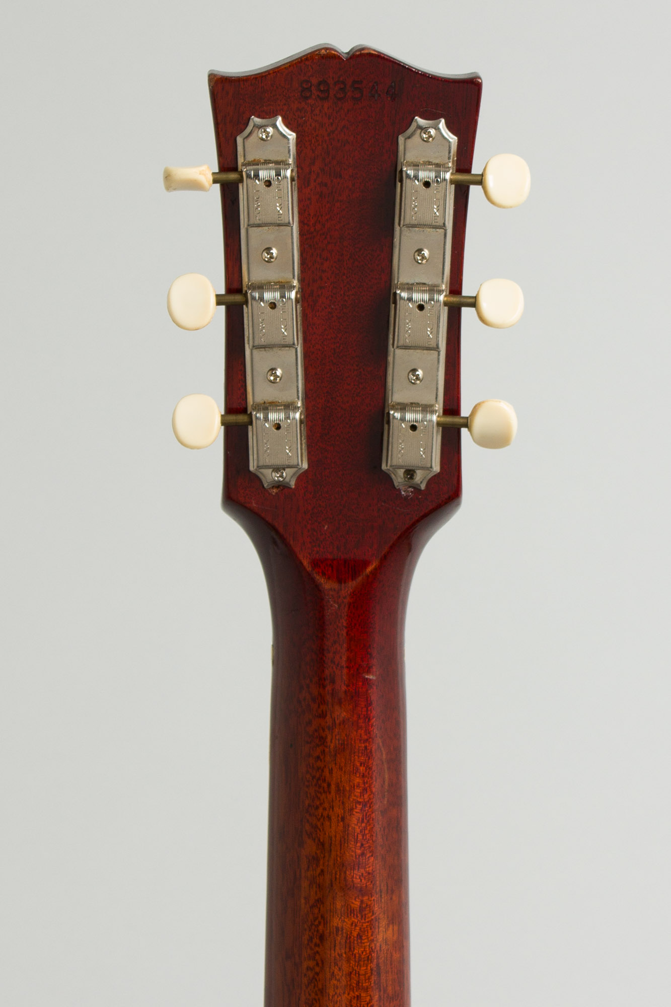 Overall this is a very nicely preserved instrument, showing some minor wear but really not that much use over 55+ years remaining in excellent playing condition. The finish has hardly any checking and just small dings, dents and chips but no large areas of loss; the back has some light curly cord marks. There are some scuffs and scratches to the plastic pickguard and pickup covers but again no heavy wear.