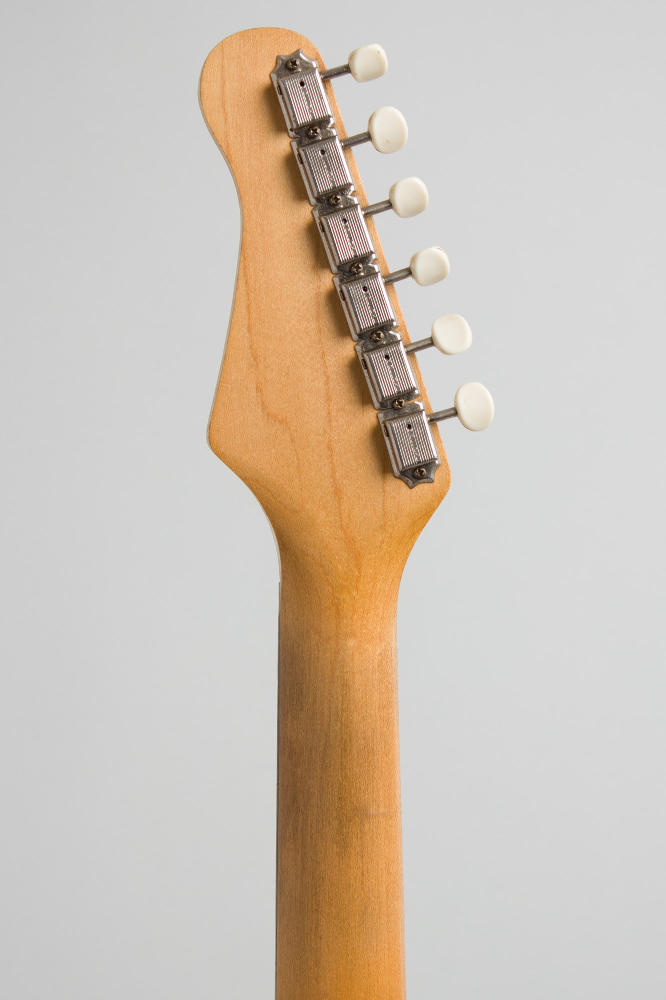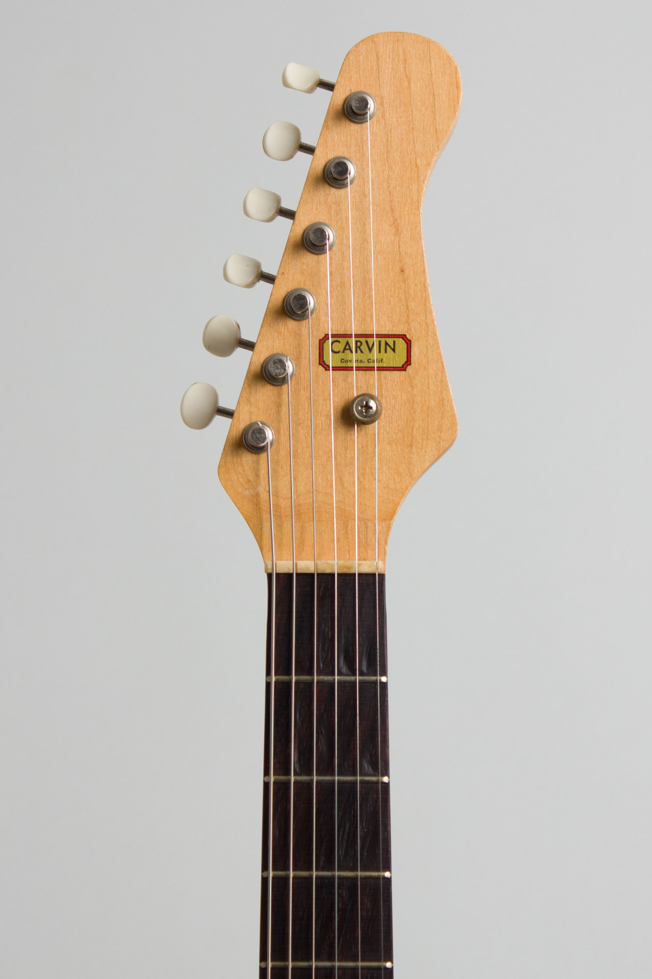 This 1962 Model 32-SGB was Carvin's standard solid body electric, newly re-styled the year before into a more Fender-like body shape after debuting in the late 1950's. This guitar is the second variation of the model, with the previously more eccentric body replaced by a kind of "flat Strat" profile. For several years in the early 50's Carvin had sold Fender guitars through their mail-order catalog and no doubt took notice of their ever-growing popularity.