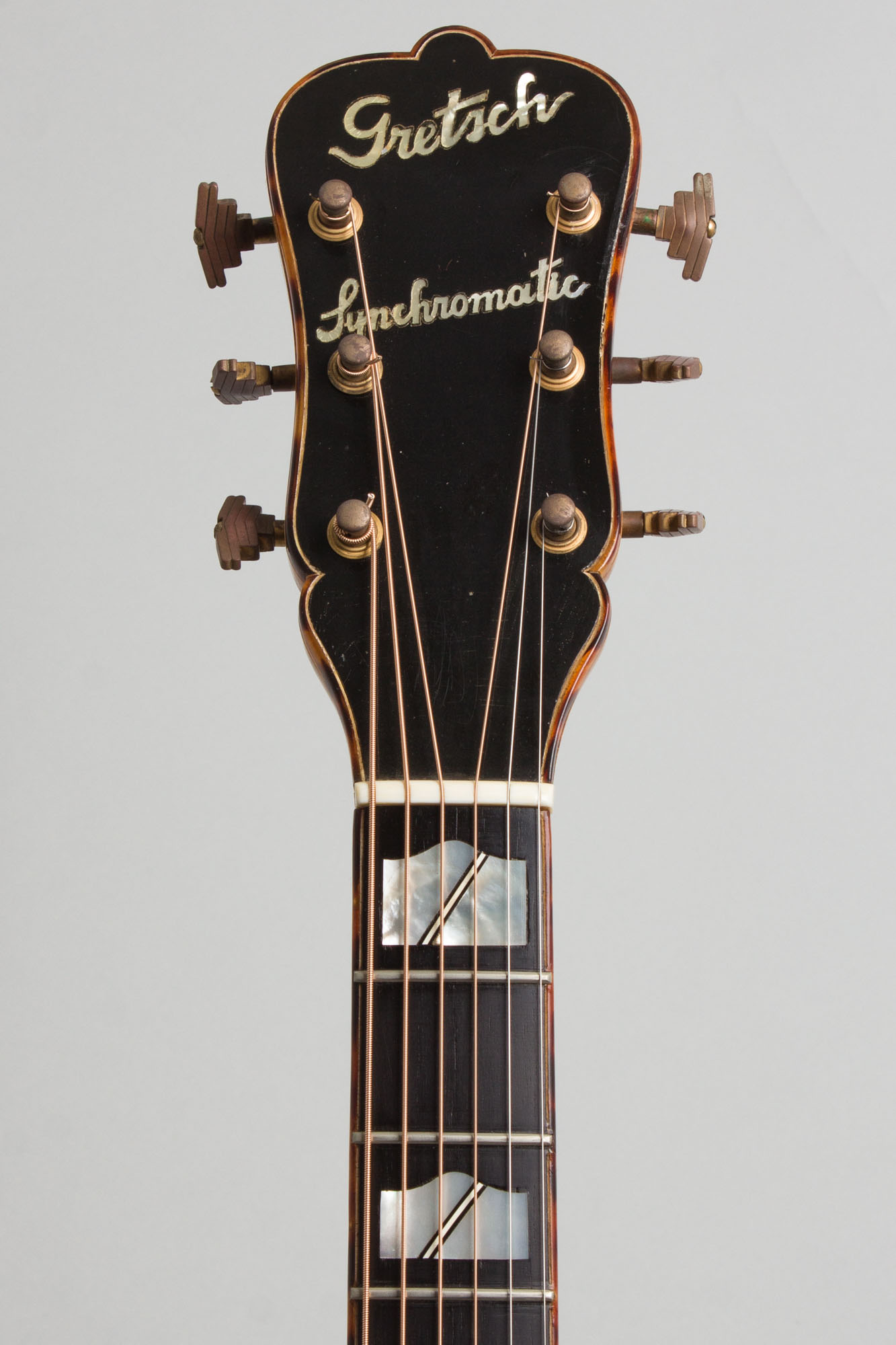In the late 1930's Gretsch was an up-and-coming musical instrument company, and the professional guitar market was ruled by big, flashy acoustic archtops. The Brooklyn firm had built some decent guitars earlier in the decade but in 1939 threw their hat fully into the ring with some of the biggest and flashiest ever made. These were dubbed the "Synchromatic" line, and while the instruments never seriously rivaled Gibson or Epiphone in sales they remain singular creations, unlike anything before or since.