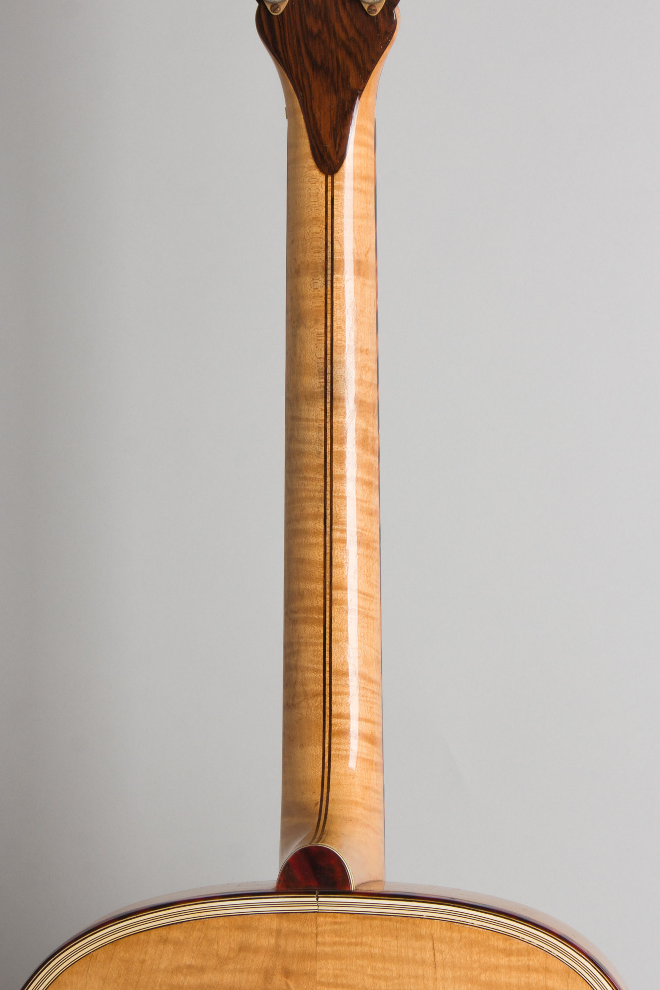 Overall length is 43 in. (109.2 cm.), 17 1/8 in. (43.5 cm.) wide at lower bout, and 3 3/8 in. (8.6 cm.) in depth, measured at side of rim. Scale length is 26 in. (660 mm.). Width of nut is 1 11/16 in. (43 mm.).