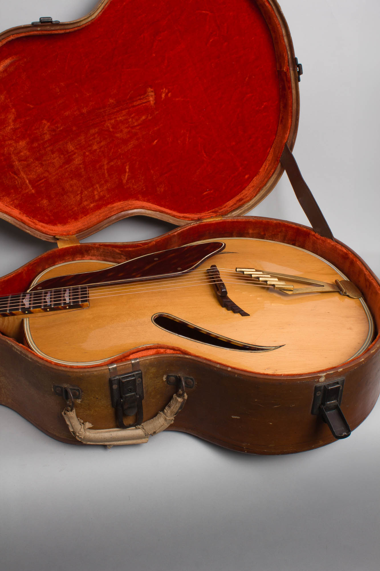 Gretsch Synchromatic 300 Model Arch Top Acoustic Guitar (1946), made in Brooklyn, NY, serial # 2014, natural lacquer finish, maple back, sides and neck;spruce top, ebony fingerboard, original brown hard shell case.