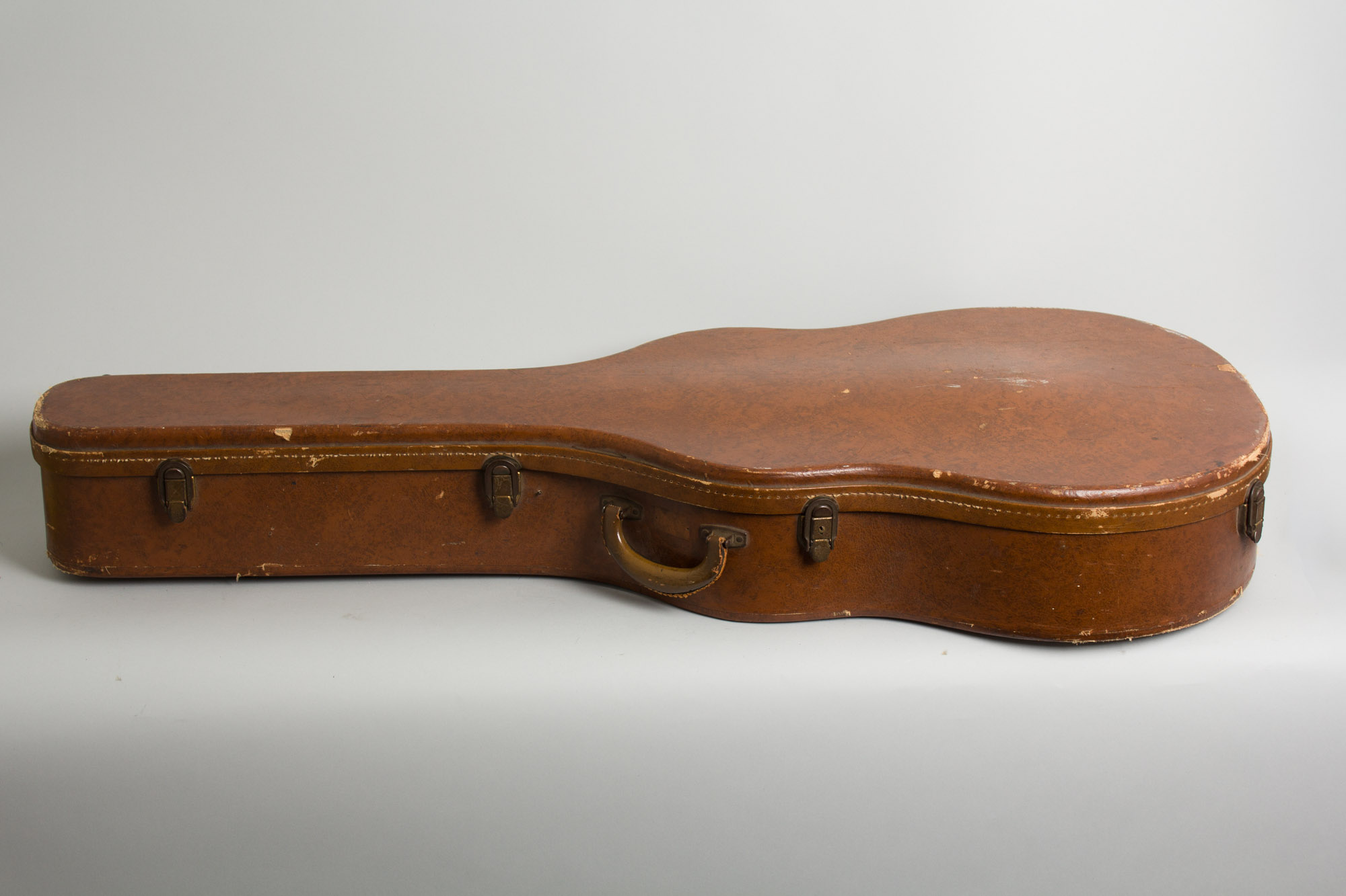 This stately guitar has seen only fairly light wear and minor repair and remains a beautifully original example of this rare beauty. The finish appears all original, still shining like it did before Pearl Harbor was bombed. There is only very light wear overall, with some small dings and dents. The only repair is the center seam in the neck has been resealed along much of its length with some minor topical touch up applied. This is fully solid but can be felt in spots.