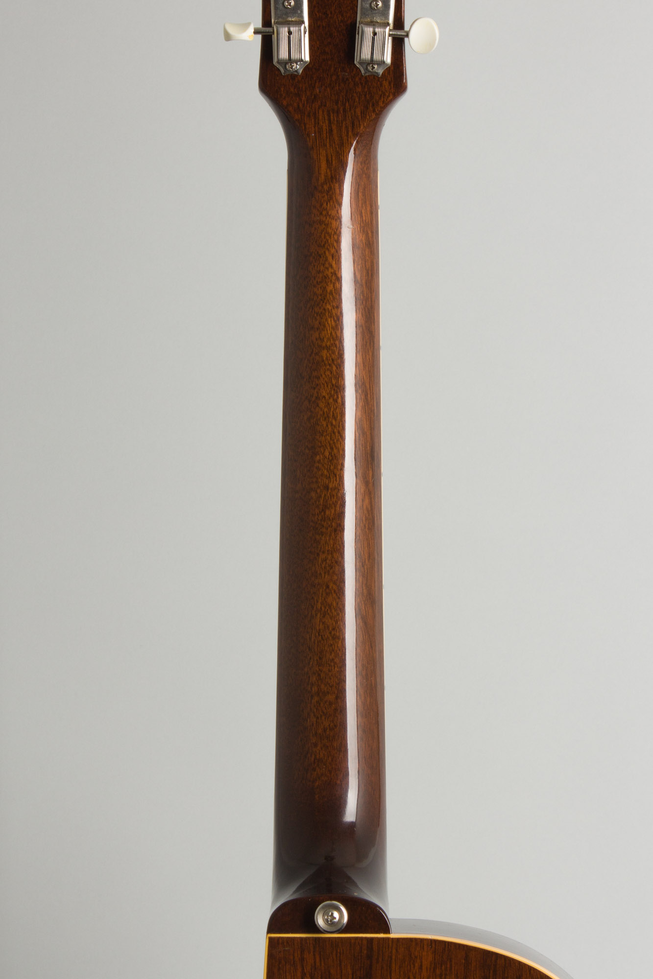 This is a really lovely very clean original guitar that shows only very light wear and some minor repair. The original lacquer finish has very little checking overall; it still shines like Ike was in office and shows only very light dings, dents and scrapes, most notably on the back. The back of the neck has just a couple of tiny dinks. The only visibly visible crack repair is a re-seal to the top center seam and the only alteration is more recent repro buttons on the original Kluson deluxe tuners replacing the crumbled originals and a new bone saddle. All else on the instrument remains original except for a strap button added on the heel.