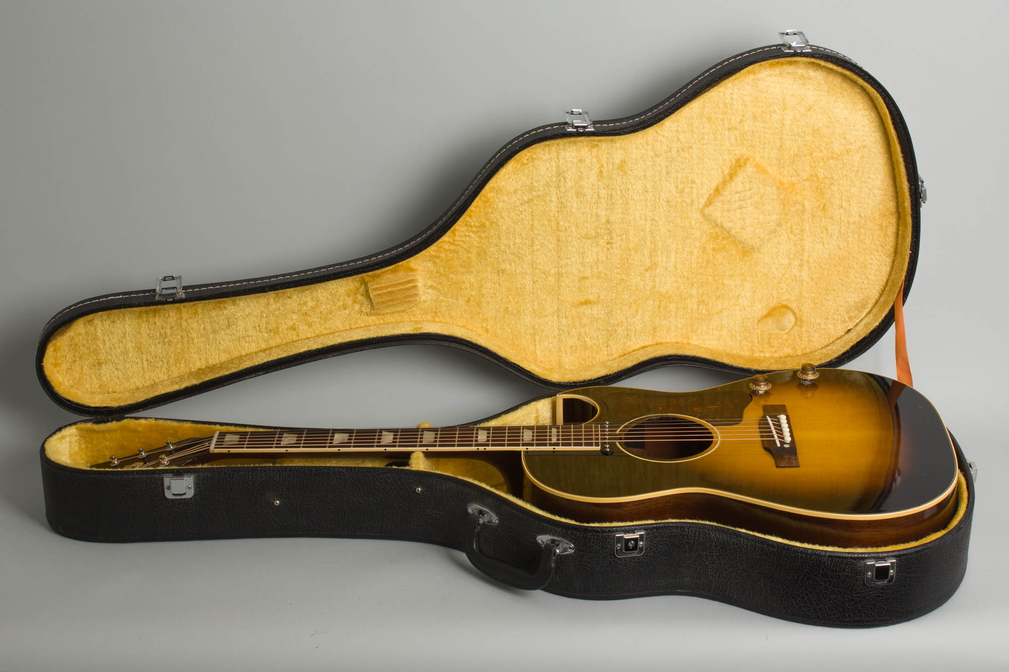 Gibson CF-100E Model Flat Top Acoustic-Electric Guitar (1956), made in Kalamazoo, Michigan, serial # V3713-18, sunburst top, dark back and sides finish, mahogany body and neck, spruce top; rosewood fingerboard, black hard shell case.