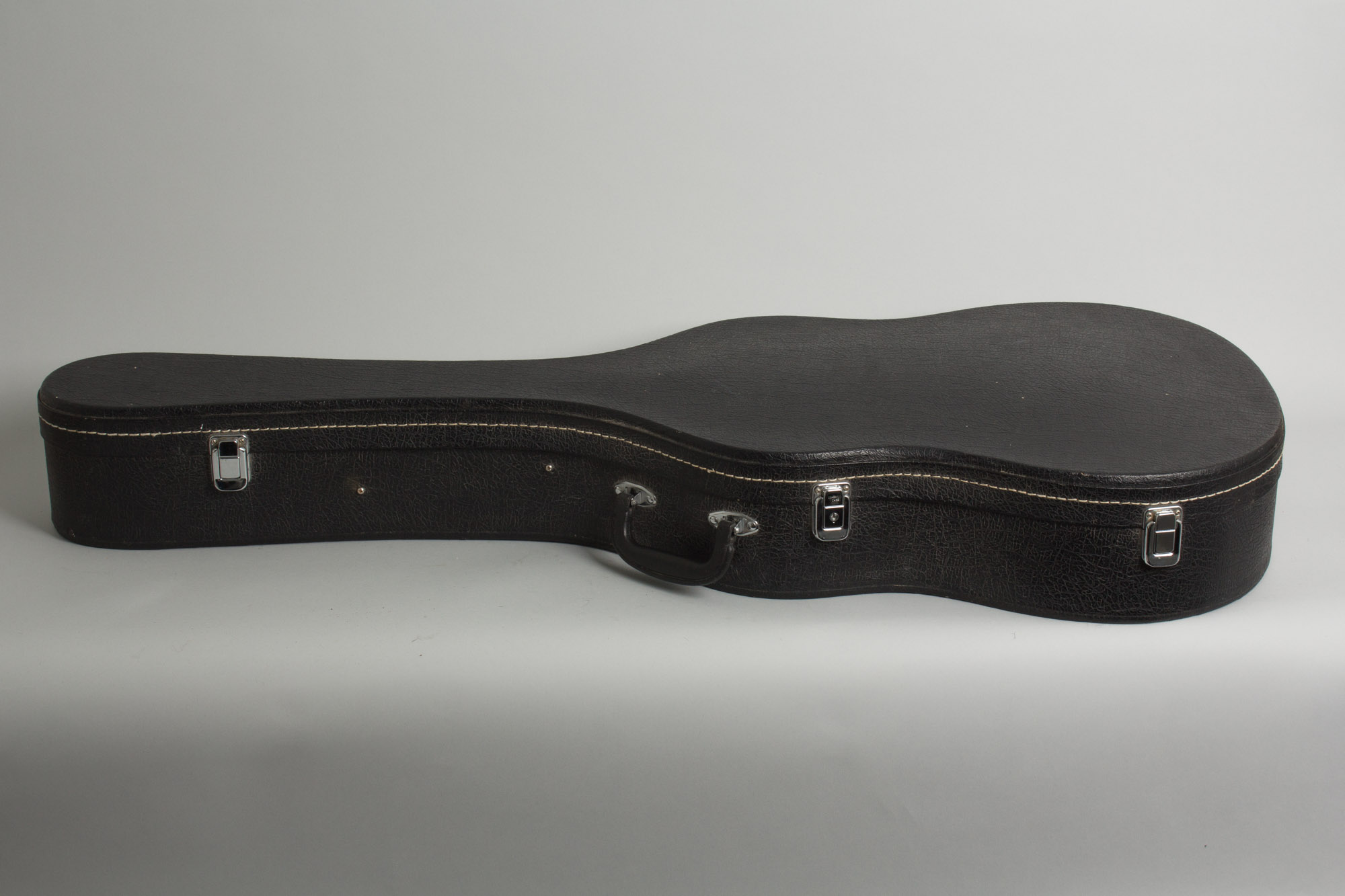 This is a fully X-braced guitar with a solid spruce top and the addition of the pickup and electronics do not have a noticeably adverse affect on the acoustic response. Some of the braces have been reglued, as is typical of older Gibson flat tops and all are solid now. The rosewood bridge and maple bridge plate are original, the bridge looks to have been lowered just a bit long ago; the retaining bolts are still intact. The original frets and the rosewood fingerboard show hardly any wear, the nut is original as well. This guitar is a really excellent player that has never had or needed a neck reset. It offers the typical CF-100 acoustic sound, sweet and nicely rounded, somewhat dry with pronounced mids and of course the option to plug in. It includes a 1970s era Japanese hardshell case, the original was likely chipboard and replaced long ago. Overall Excellent - Condition.