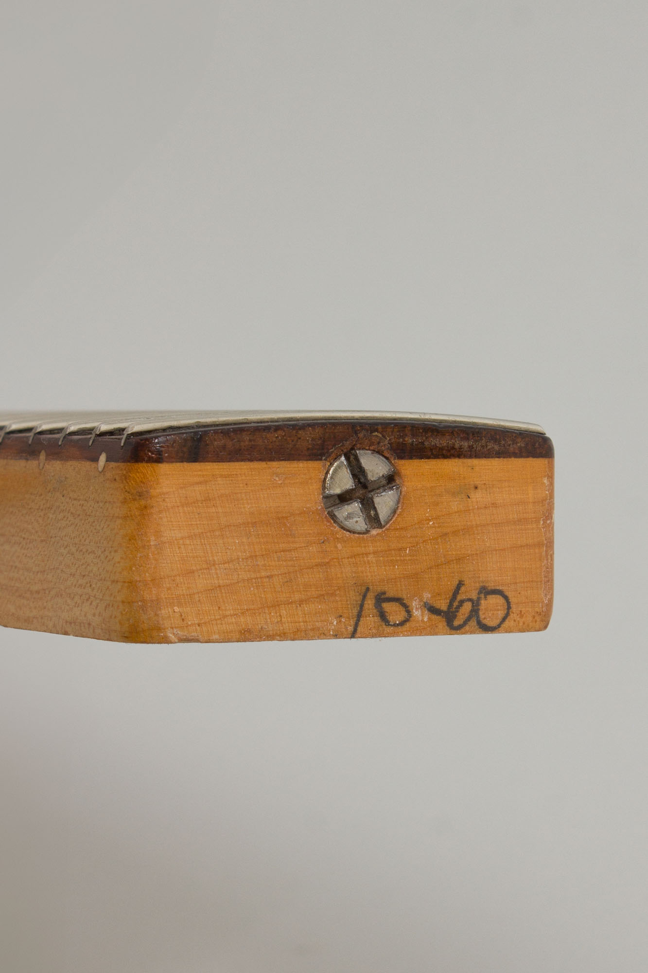 Overall length is 37 3/4 in. (95.9 cm.), 12 1/4 in. (31.1 cm.) wide at lower bout, and 1 1/2 in. (3.8 cm.) in depth, measured at side of rim. Scale length is 22 1/2 in. (572 mm.). Width of nut is 1 9/16 in. (40 mm.).
