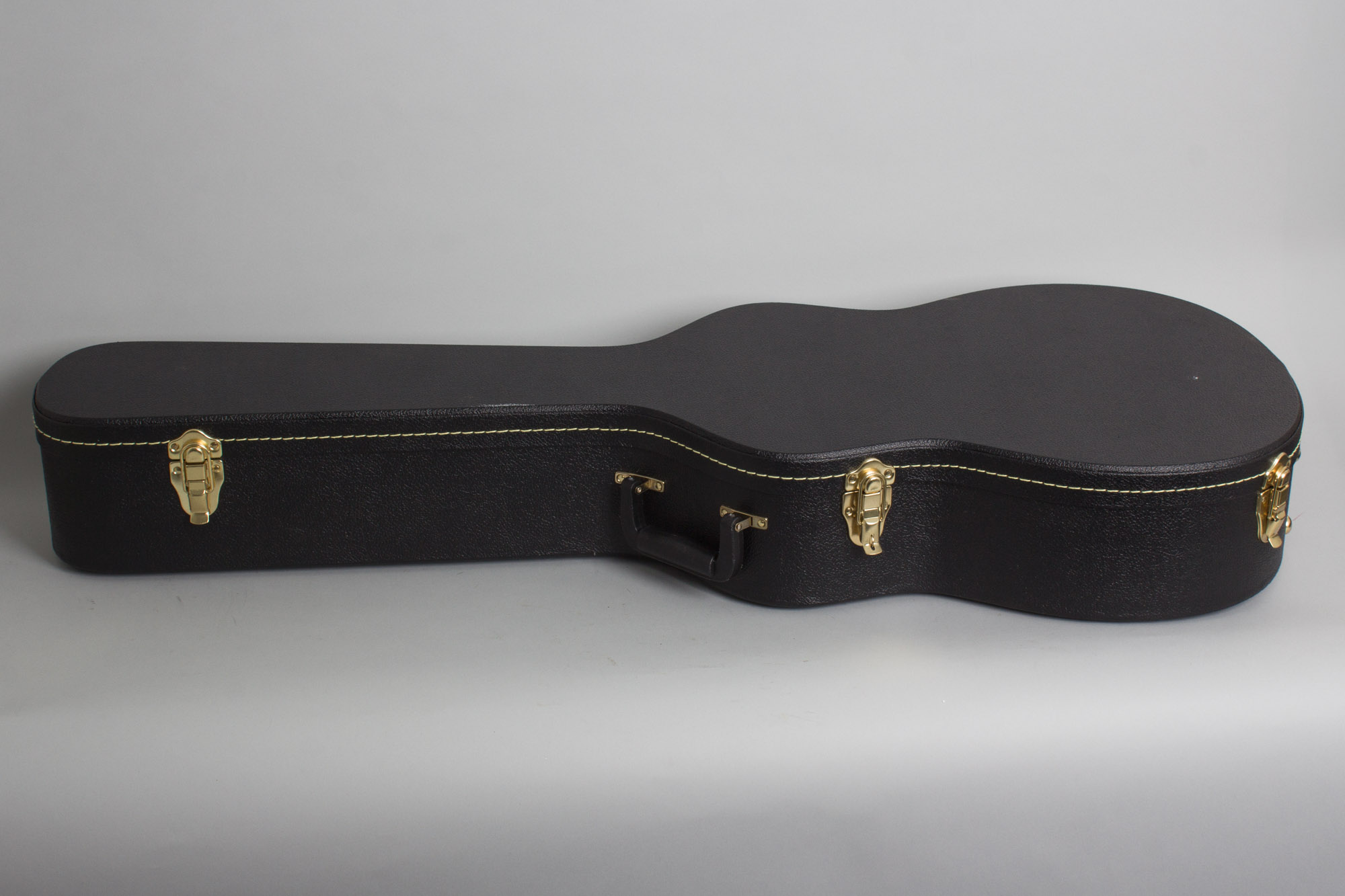 This guitar shows some light general play wear and two repairs to grain splits in the top. One of these is on the center seam, sealed with no finish work, the other runs from the back edge to just above the bass side foot of the bridge. This one is an older repair with some touch up and buffing to the finish. The top has some dings and dents but less finger wear than many, and the rest of the guitar is mostly quite clean. Something was once adhered to the beck of the neck leaving marks behind the sixth and ninth frets, with some slight discoloration in between. The guitar plays very well with a lively sound, and comes in a good HSC. Excellent - Condition.
