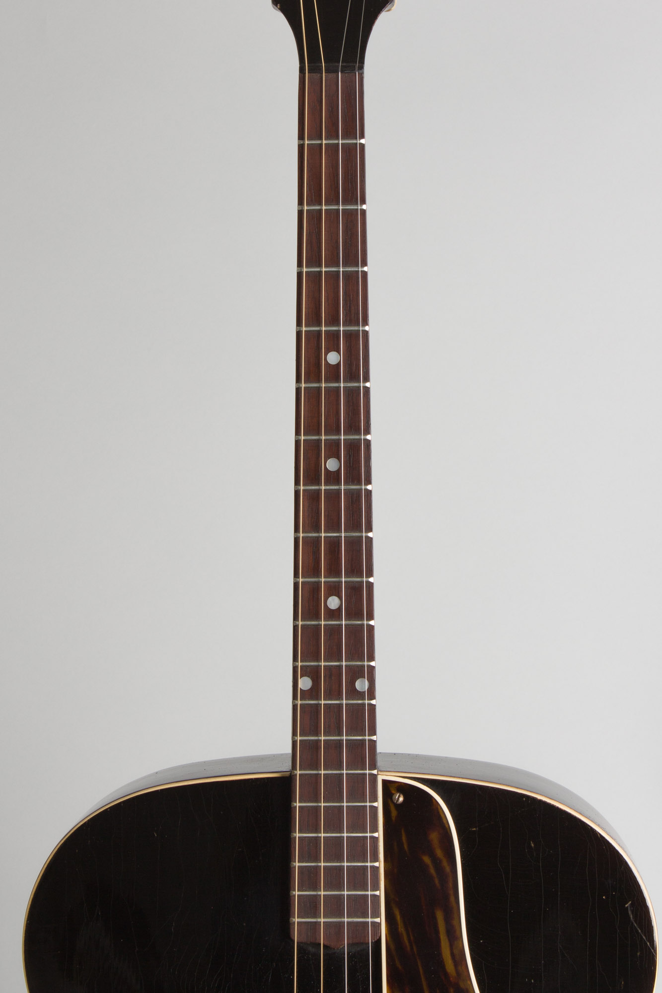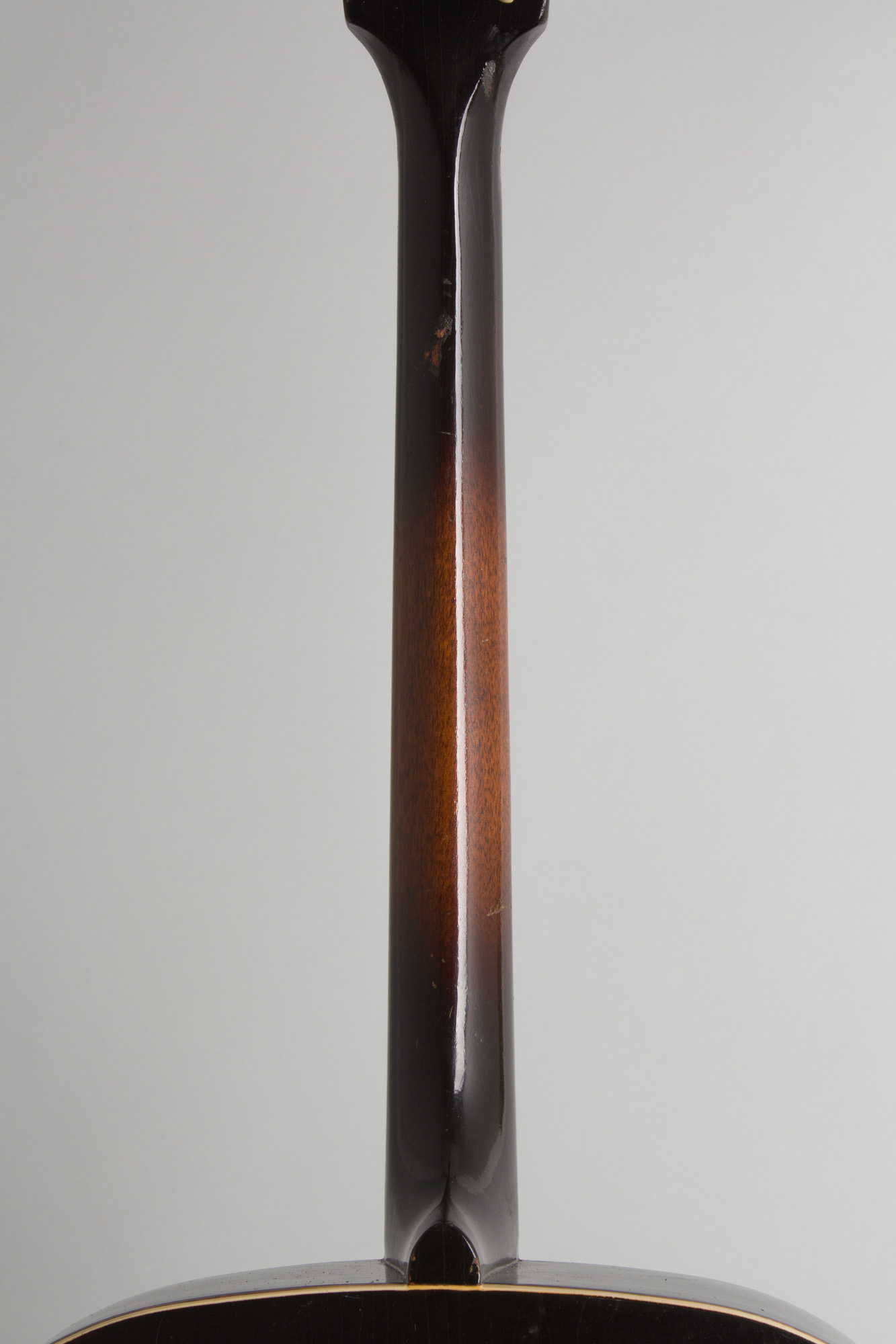 Overall length is 39 in. (99.1 cm.), 15 in. (38.1 cm.) wide at lower bout, and 3 1/8 in. (7.9 cm.) in depth, measured at side of rim. Scale length is 23 in. (584 mm.). Width of nut is 1 1/4 in. (32 mm.).