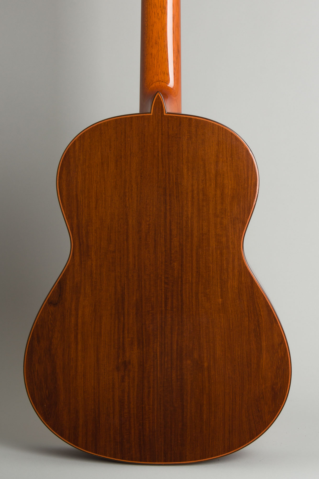 Overall length is 39 in. (99.1 cm.), 14 3/8 in. (36.5 cm.) wide at lower bout, and 3 15/16 in. (10 cm.) in depth at side, taken at the end block. Scale length is 25 1/2 in. (648 mm.). Width of nut is 2 in. (51 mm.).