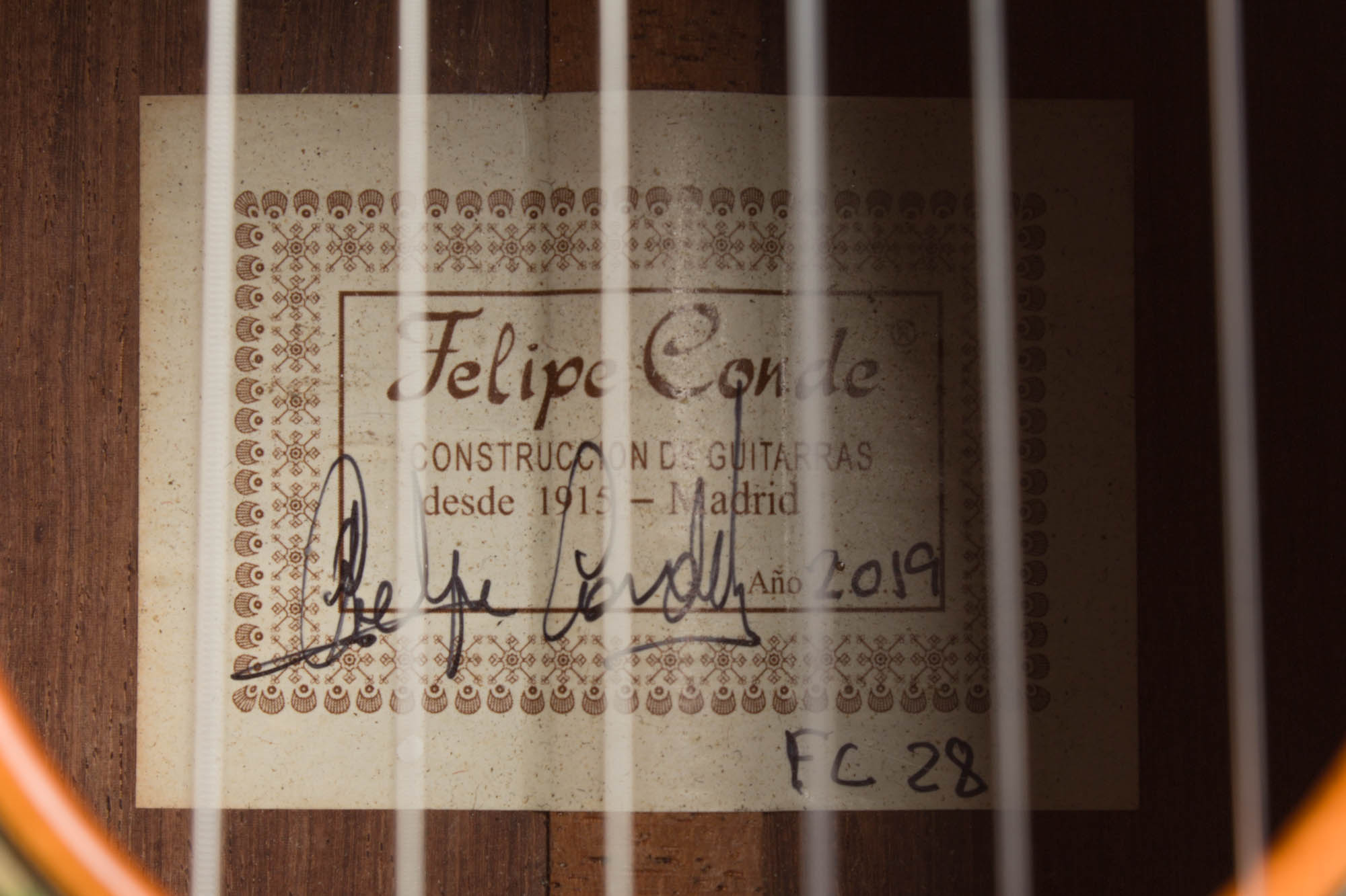 Felipe Conde has been crafting exceptional quality flamenco and concert guitars for just short of half a century out of Madrid alongside his brother, Mariano Jr. The Conde Hermanos are a family of respected builders carrying the torch of the family business after the passing of their father Mariano Sr. and uncle Faustino. These Condes were the proud descendants of Domingo Esteso who began the shop after training under the notable Manuel Ramirez. As "Sobrinos de Domingo Esteso" or "Nephews of Domingo Esteso," they made instruments preferred by players spanning from traditional masters like Paco de Lucia to the likes of Leonard Cohen. This guitar comes from the bench of Felipe himself, no longer formally under the imprint of Conde Hermanos though build in their longtime workshop.