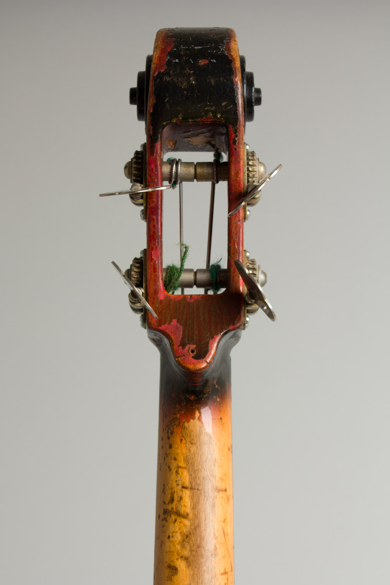 This particular bass has seen a lot of use; someone obviously made this fretless mystery-pickup model their go-to instrument for quite a while. The sound sits somewhere in between a fretless bass guitar and an upright. The acoustic-y twang of the "mystery" unit can be mellowed using the volume and tone controls, but it does take some experience to understand how to get a variety of sounds from the instrument. The combination of the fretless fingerboard and bridge mutes can create a fairly convincing electric upright sound if used carefully, just as Everett Hull envisioned. While admittedly not to every taste, the original AUB-1 is a connoisseur's delight for the bassist with an eye to its unique character and history.