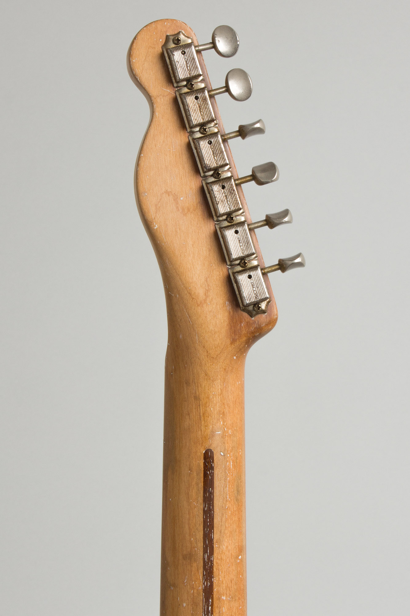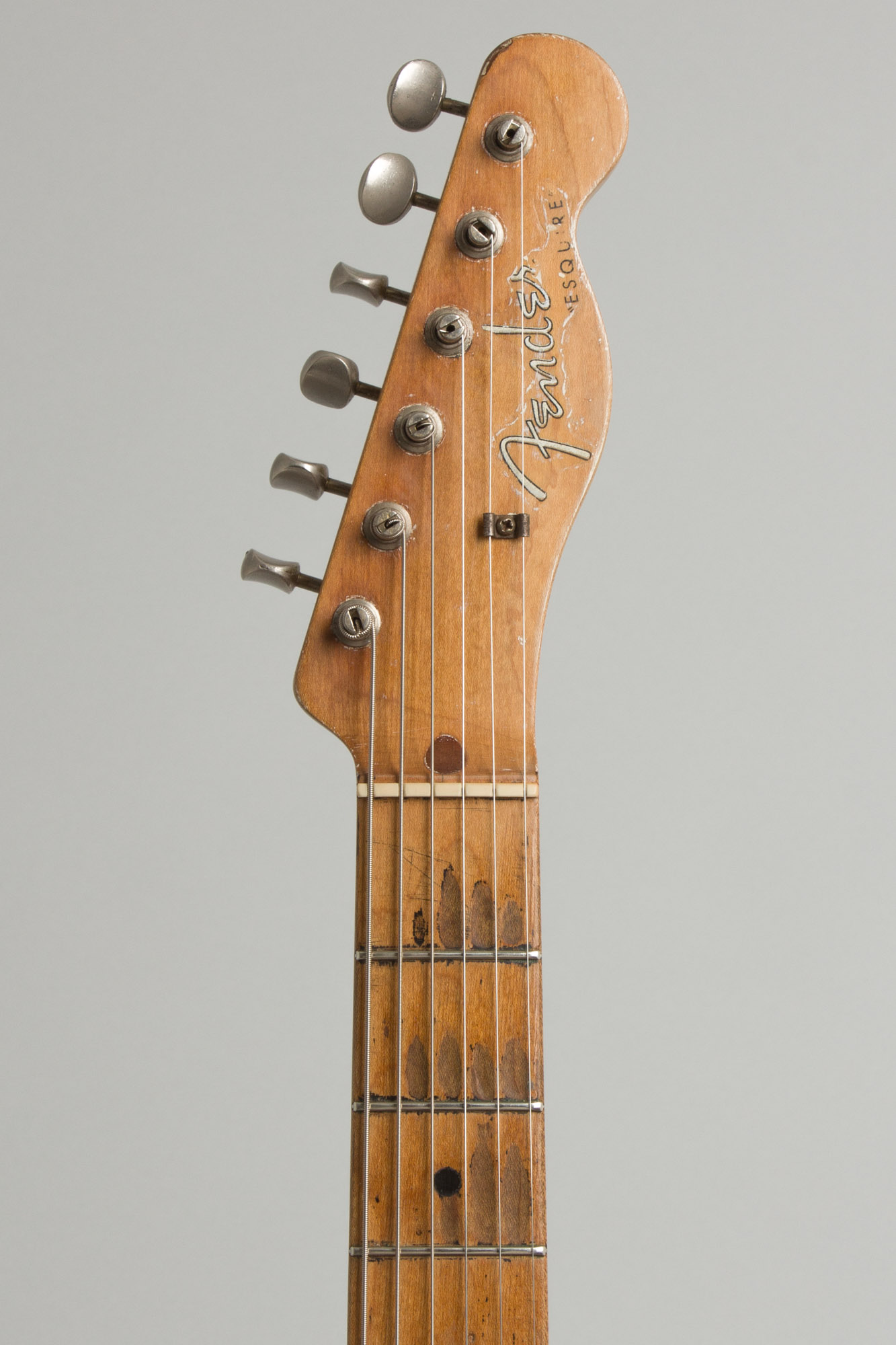 The Esquire was cataloged as a separate model but was really just a single-pickup Telecaster, allowing Fender sales to offer a slightly cheaper $149.50 alternative to the buyer who couldn't quite spring for the Tele's $189.50 price tag. This mid-1957 example shows typical features for the period including the single ply white plastic pickguard (standard by early 1955, replacing the earlier "blackguard") and the old script Fender logo above the newer "butterfly" style string tree.