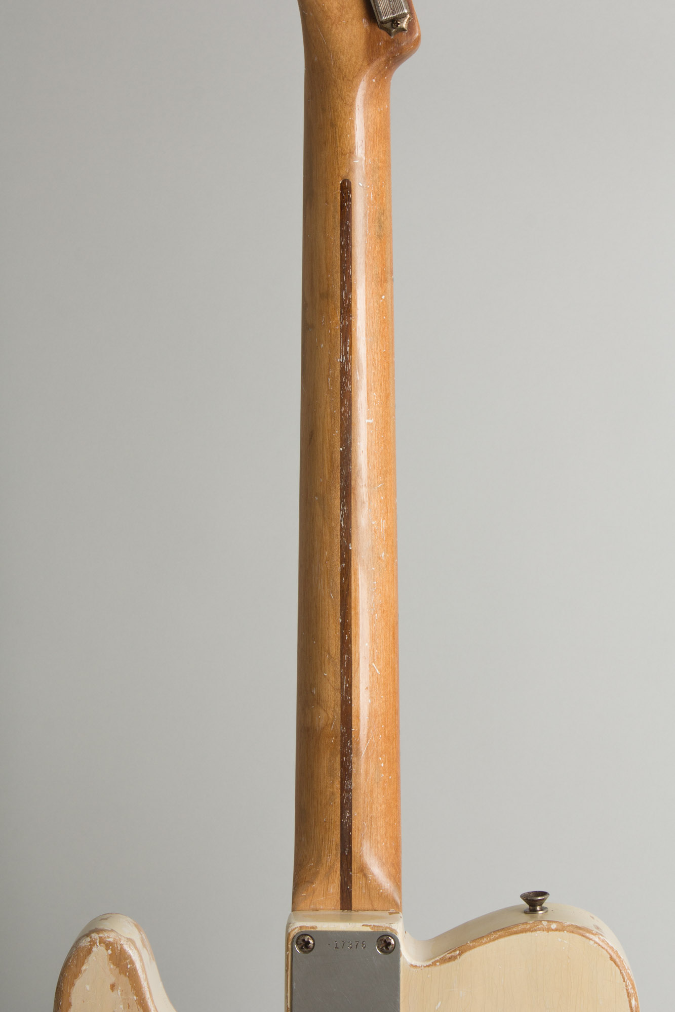 This slightly bedraggled looking '57 Esquire may appear a bit of a mutt, but it survives in excellent playing condition, and surprisingly original if somewhat cosmetically challenged! The original body finish as noted was once covered with white paint which has been removed, leaving many small traces behind, including full coverage in the unused neck pickup rout and wiring channel. The dated bridge pickup cavity and neck pocket were not covered over and remain clean. There are many notable wear spots to the body both due to older play wear and buffing, and the patina is smooth due to the latter. The back was buffed less than the face and shows more scuffing and sanding marks while the lower back edge has the most finish loss.