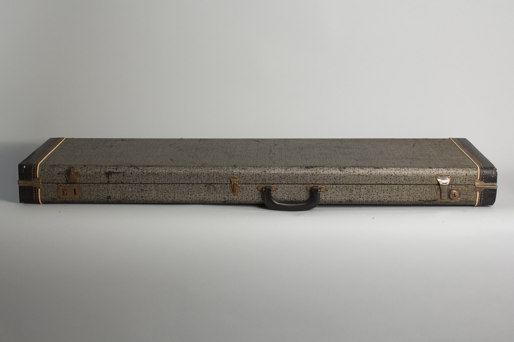 All hardware is original except one of the string ferrules on the back is newer, and there is a recent strip of foam on the mute bars. The fairly small fret wire remains original with good height remaining; there is some light round-wound string wear in the lower positions but not enough to hamper playability. This bass still plays very well with the typical punchy Mustang tone. The original lighter-gauge 60s style grey Victoria hardshell case is included in solid shape with some external wear and one latch DOA. Overall Excellent - Condition.