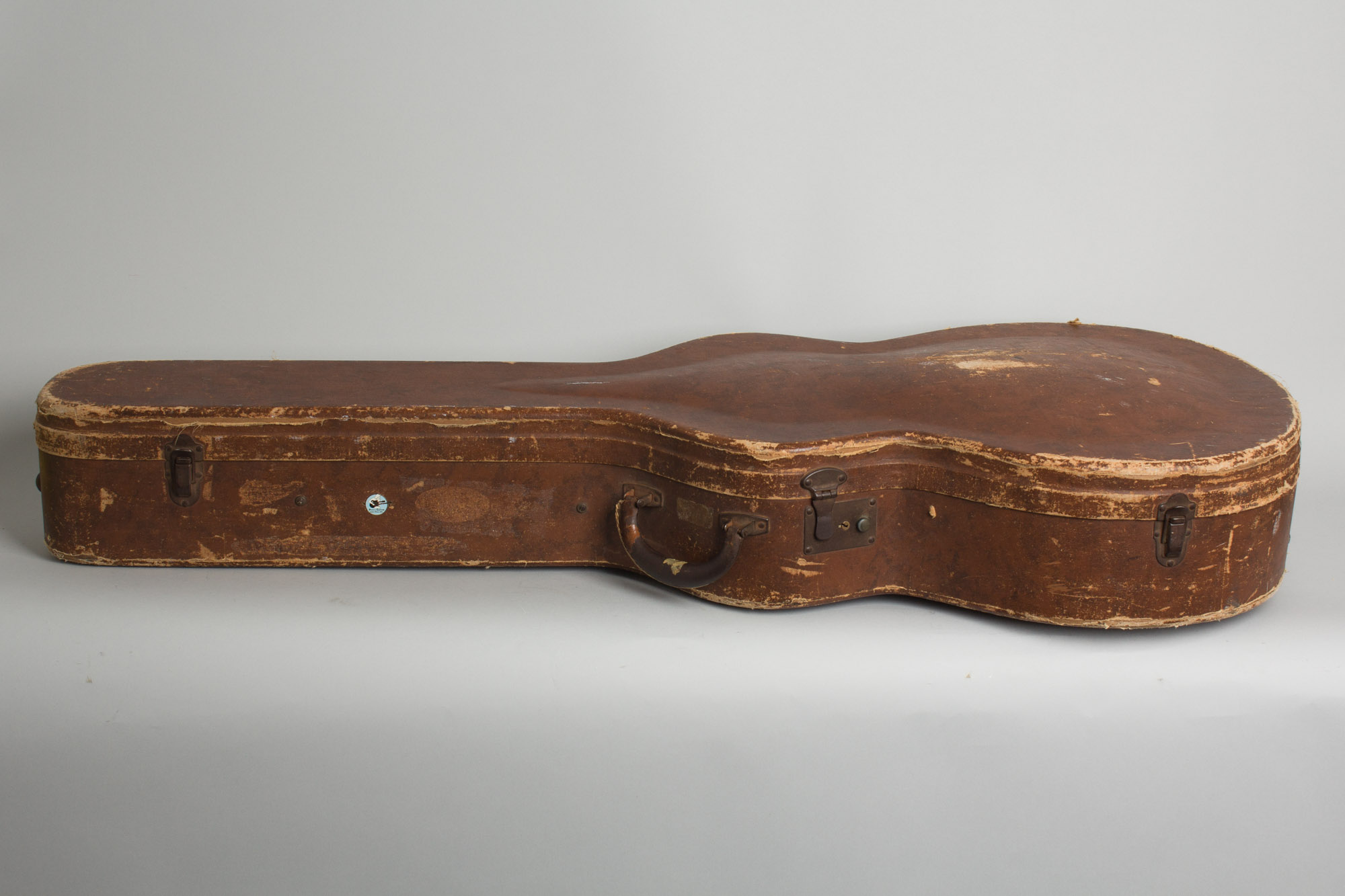 The guitar has been neatly refretted with a close match to the original fret wire showing little subsequent wear; there are a few fairly deep divots in the fingerboard in the first position under the higher strings. It nonetheless plays perfectly and sounds divine, both crisp and warm, powerful and very responsive especially for a large bodied guitar. It rests happily in the original brown Lifton HSC, worn as one might expect but still solid. This case has a small pin affixed to the side for Pete's Guitar shop, a notable dealer in the earlier days of vintage guitar culture. Overall Very Good + Condition.