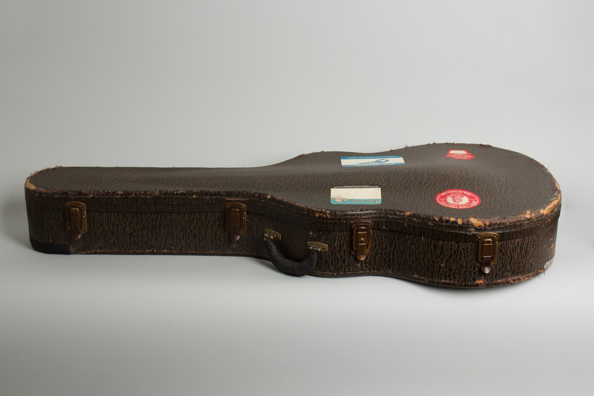 The pickguard is a recent excellent Paul Fox repro, the original is in the case showing early signs of celluloid deterioration. Aside from the unfortunate altering of the serial number and the replaced nut everything else on the guitar including all other hardware remains original. The original small-wire frets show some light wear but still play fine and the guitar sounds excellent, with a sharp neck angle helping drive the top easily. This very fine postwar L-7 is housed in a lovely original HSC with some general wear, a taped up handle and period travel sticked decoration. Overall Excellent - Condition.