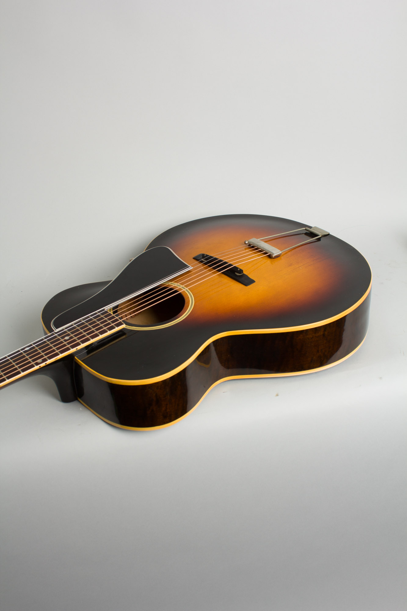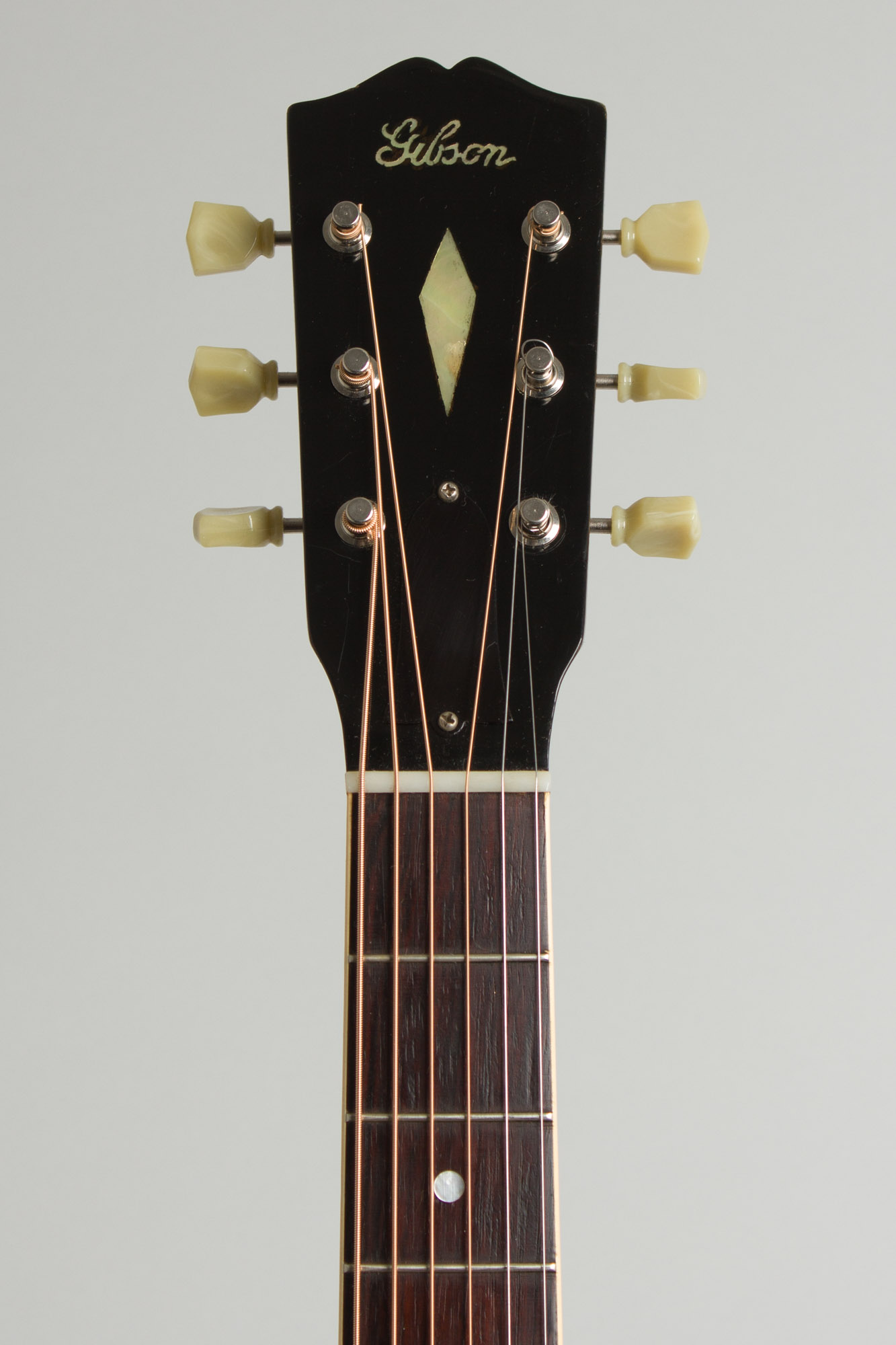 This is a cool virtually one-of-a-kind piece mixing the 1930s and 1950s with impeccable documentation of its story in the form of the almost never preserved original Gibson paperwork. It lives in a later arched-lid Dreadnought HSC for security but the period (and pretty much non-functional) chipboard case it shipped back from Kalamazoo in is also included if desired; there is even some original 1950s Gibson tissue paper left inside! Overall Excellent Condition.