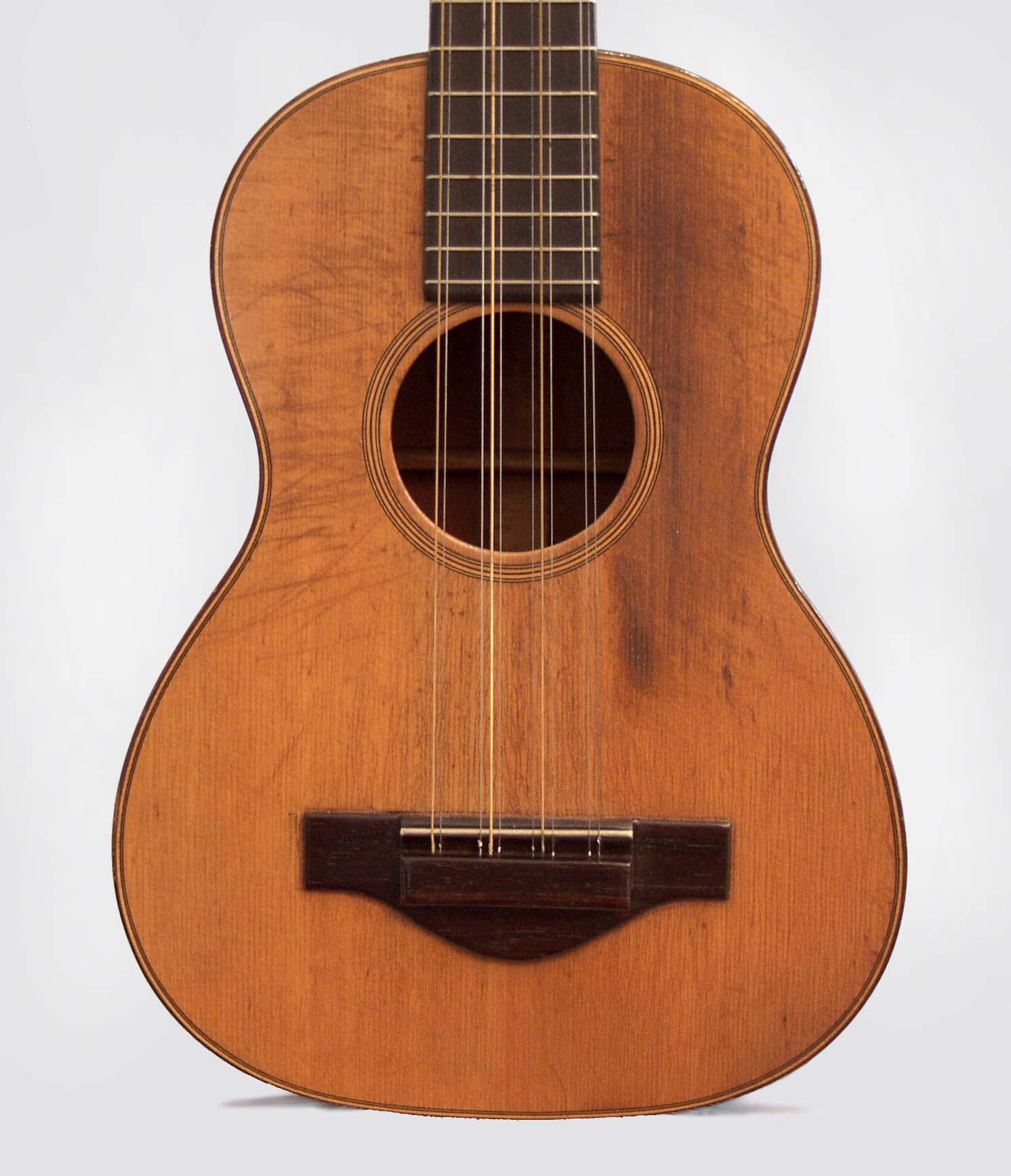 A very nice, if well-played, early Style 18 Martin Tiple, from the first few years of Martin's manufacture of "The Uke that went to College!" No better examples of these now somewhat obscure instruments have ever been made. While not well remembered, numerous small African-American string-swing ensembles of the 1930's made extensive use of these small, loud instruments for both fast lead work and frantic strumming. Two of the best known were the Spirits Of Rhythm (featuring guitarist Teddy Bunn) and Cats and the Fiddle, where Tiny Grimes got his professional start.