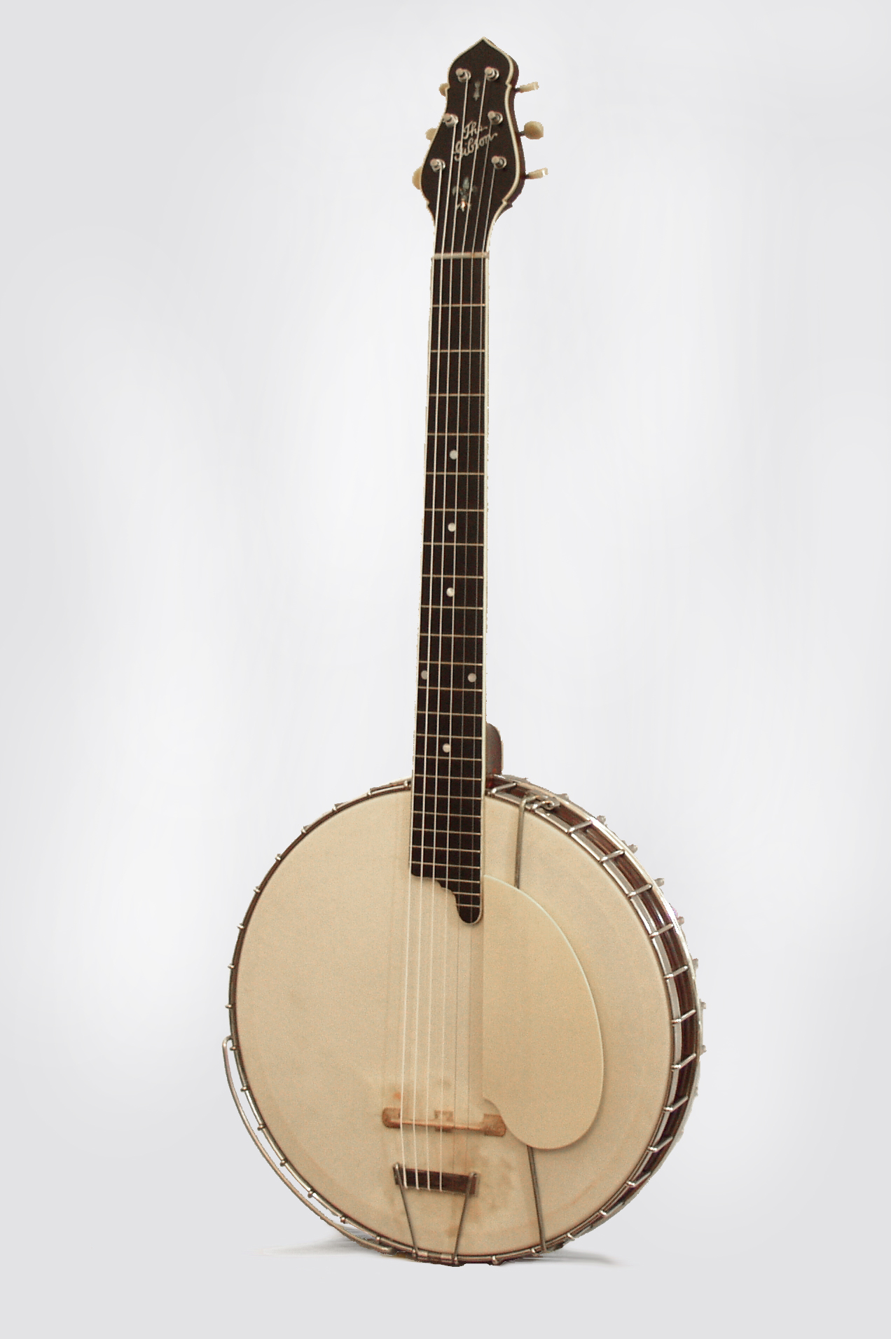 One of Gibson's more unusual instruments, and a considerable rarity. The original "Style GB" banjo guitar is not only an extremely impressive find in its own right, but is also remembered by aficionados as the instrument used extensively by pioneering African-American bluesman/songster "Papa" Charlie Jackson, the first self-accompanied solo performer to record in that idiom. Jackson's early Paramount records, highly influential in their time and still great listening today, are a showcase for the unique sound of this most interesting Gibson creation. This early "Snakehead" banjo-guitar is a fabulous example of this style instrument.