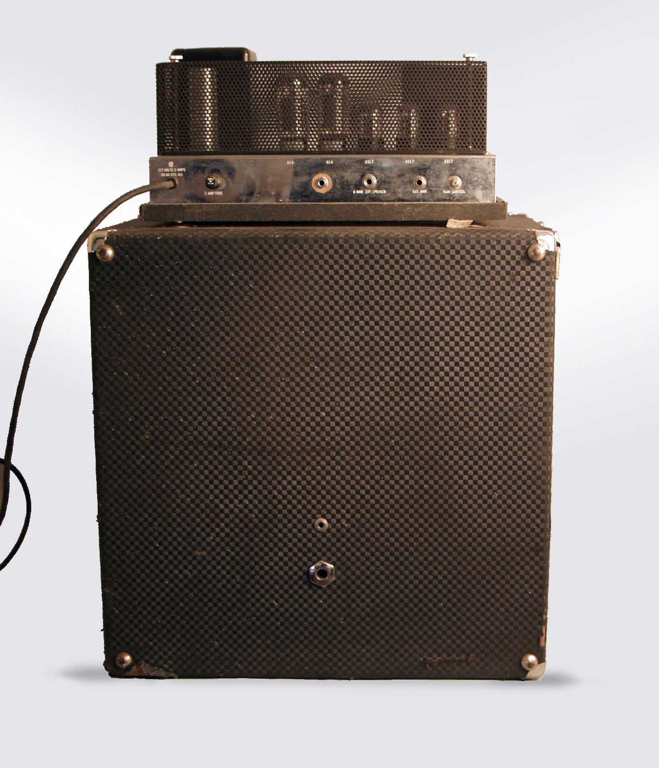 Ampeg B-15N Model Tube Bass Amplifier (1963), made in Linden NJ, blue checked Tolex finish.