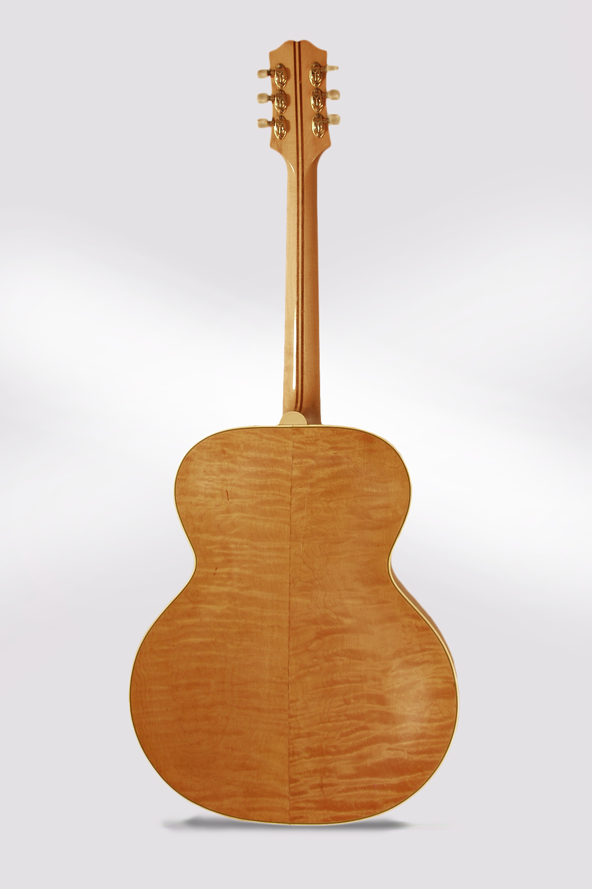 Epiphone Deluxe Model Arch Top Acoustic Guitar (1945), made in New York City, natural finish, curly maple back and sides, spruce top; laminated maple neck with rosewood fingerboard, black hard shell case.