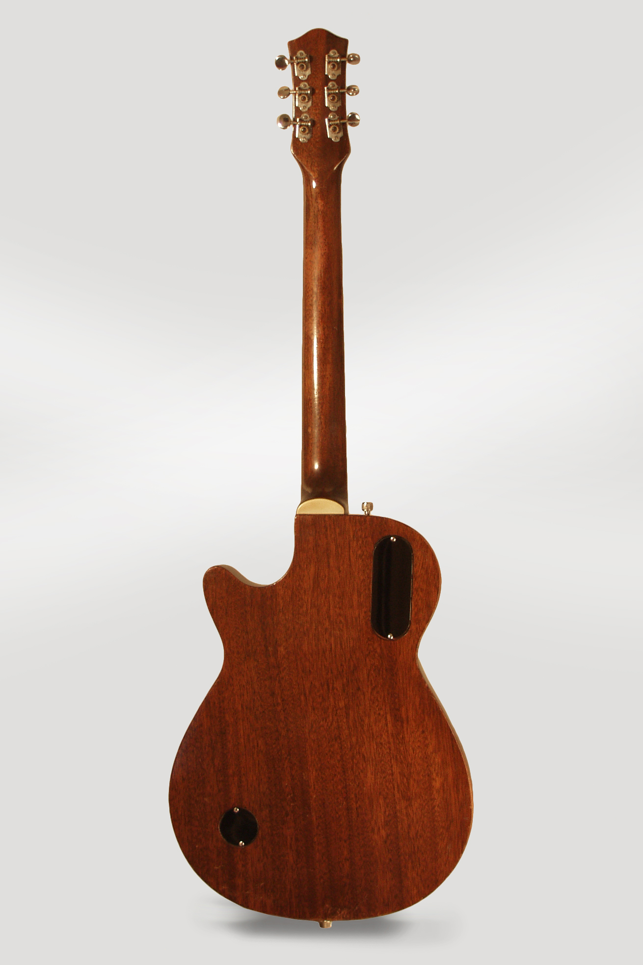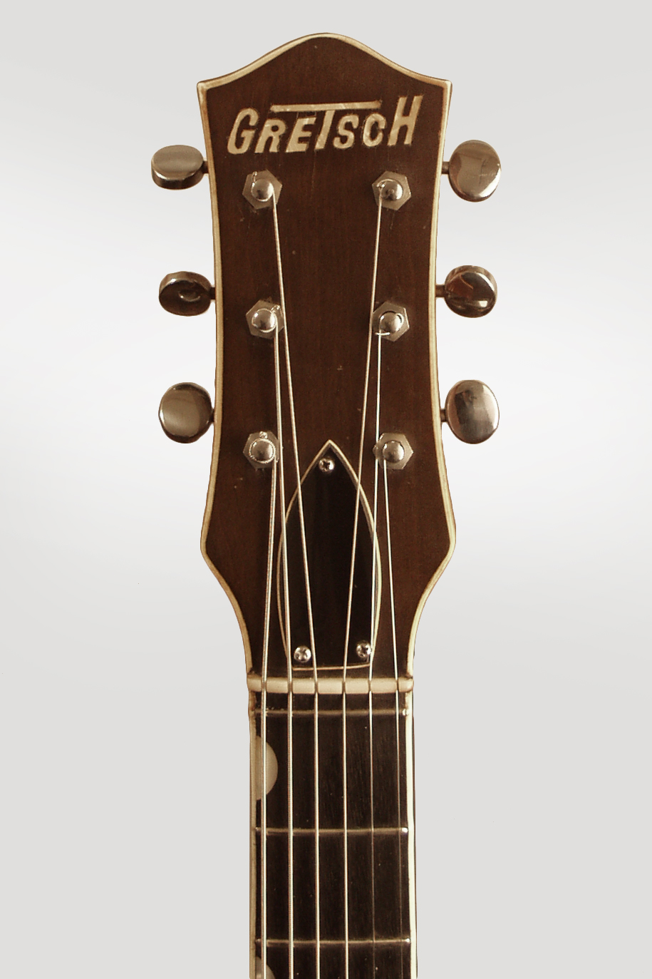Gretsch Silver Jet Model Solid Body Electric Guitar (1960), made in Brooklyn, NY, silver sparkle top, natural back and sides finish, mahogany body and neck; ebony fingerboard, original blue/grey hard shell case. One of the coolest Gretsch guitars ever, the Silver Jet is much sought after model among connoisseurs. All original Silver Jets are very rare; this one dates to 1960, when the model was produced only in tiny numbers at best. The distinctive features of this era Jet are the twin patent-number Filter'Tron pickups on a single-cutaway body, "neo-classic" fingerboard inlay and 3-knob, 2 switch wiring scheme. The eye-catching silver sparkle top is made of the same Nitron plastic material Gretsch used to cover drum shells. Even in the populuxe 1950's this model could be seen as gaudy...by 1960 the Duo Jet and Jet Fire Bird with black and red painted tops were still quite popular but the silver-topped variant is rarely seen.