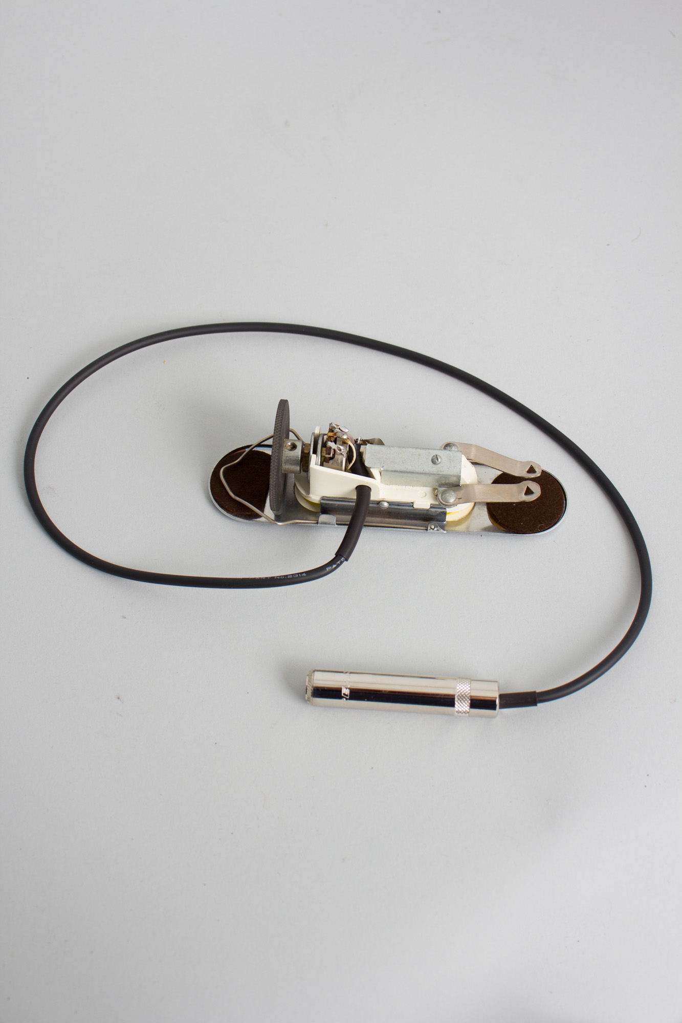 This is a very cool and clean example of DeArmond's classic sound hole pickup for flat-top guitars, the RH-C. The date on the original volume pot is not easily visible, but the cosmetics are typical of the early 1960s. The unit shows some light wear overall (mostly scuffing on the plastic coil cover) but still sounds great. It is currently wired to a female phone output jack that can be slung through (or attached to) a strap but can also be re-wired depending on how it will be used. This pickup was practically ubiquitous in the 1950s and '60s as the primary method of amplifying a flat-top guitar, used famously by Lightnin' Hopkins, Elmore James, Siegel-Schwall and a host of other period blues, folk, and country performers. Excellent Condition.