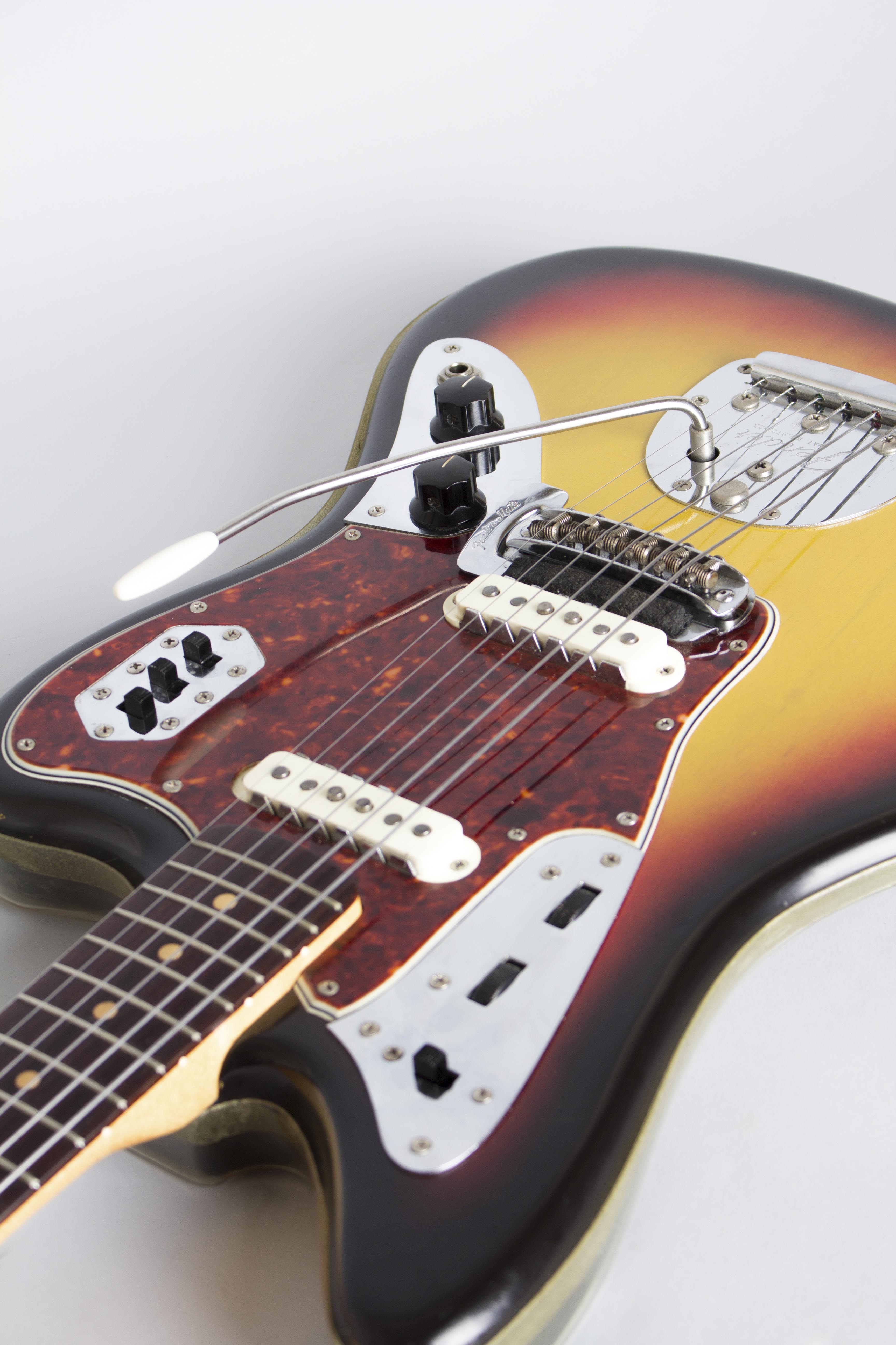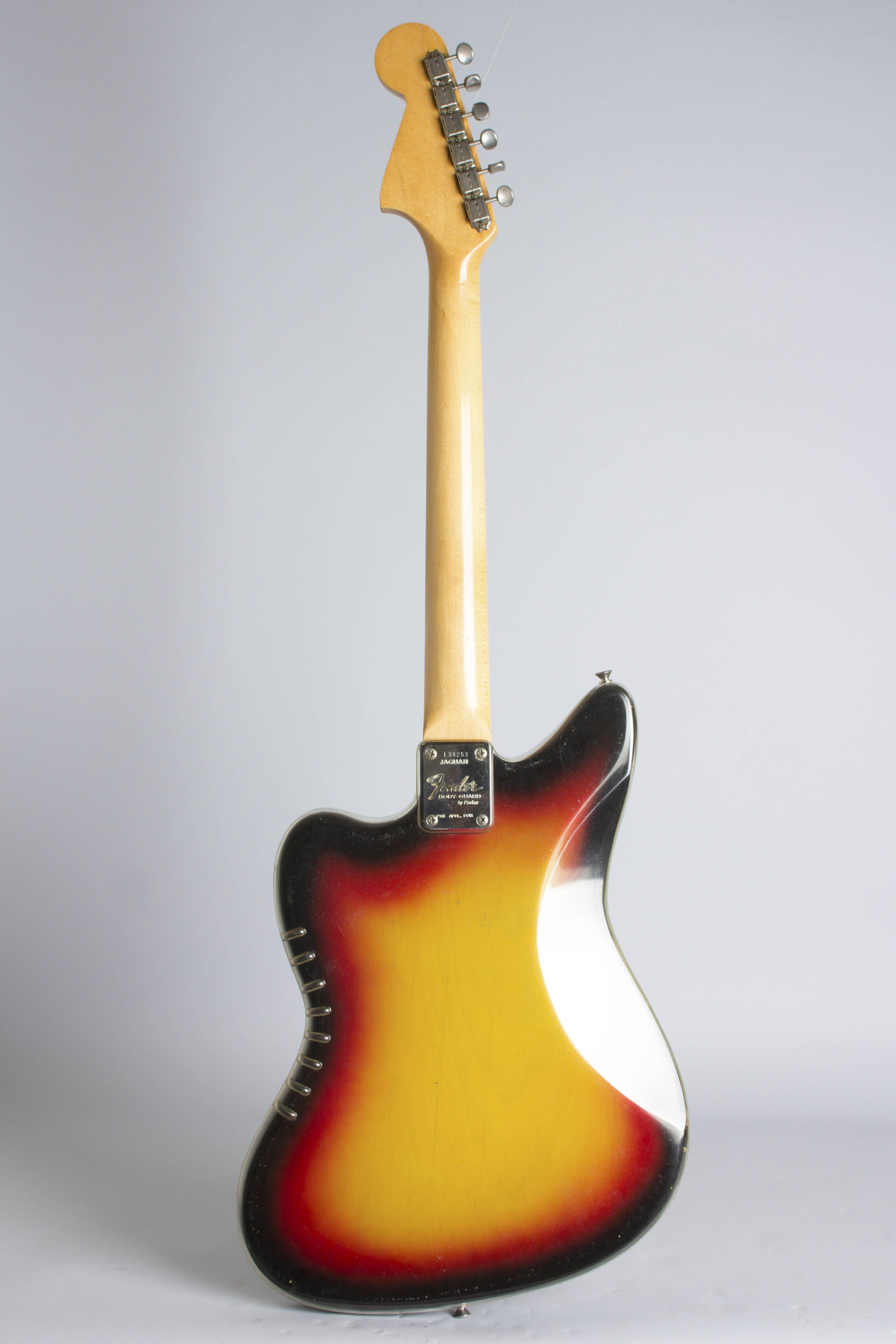 Fender Jaguar Model Solid Body Electric Guitar (1964), made in Fullerton, California, serial # L38253, sunburst lacquer finish, alder body, maple neck with rosewood fingerboard, original black tolex hard shell case.