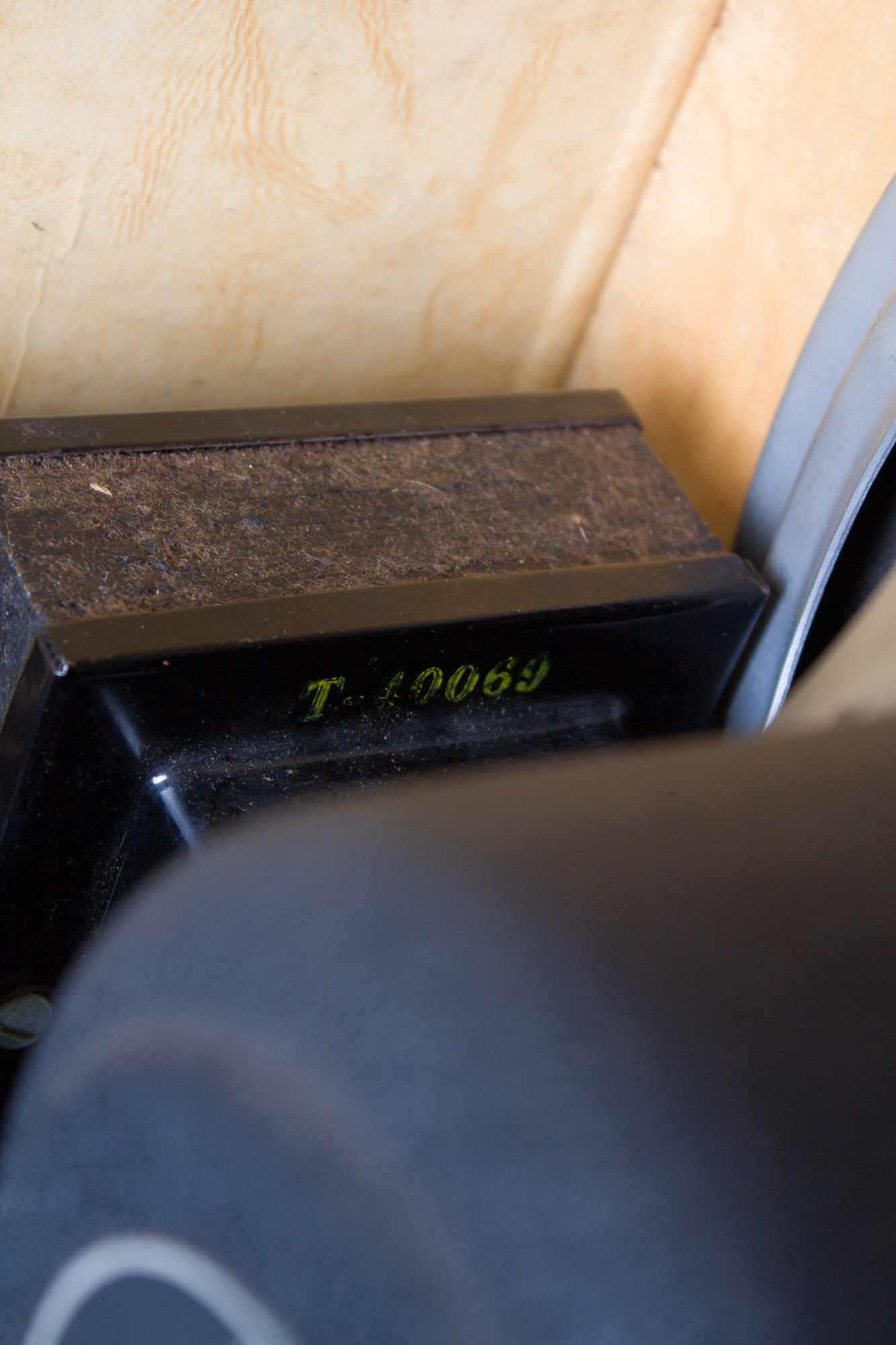 Cosmetically this amp is very clean, with a nice slightly smoked patina and some visible wear around the corners and a couple scuffs on the front, but far less than most of these for its 80+ years on earth. The handle is significantly worn, but still retains its shape and part of the front-right leather corner is missing.
