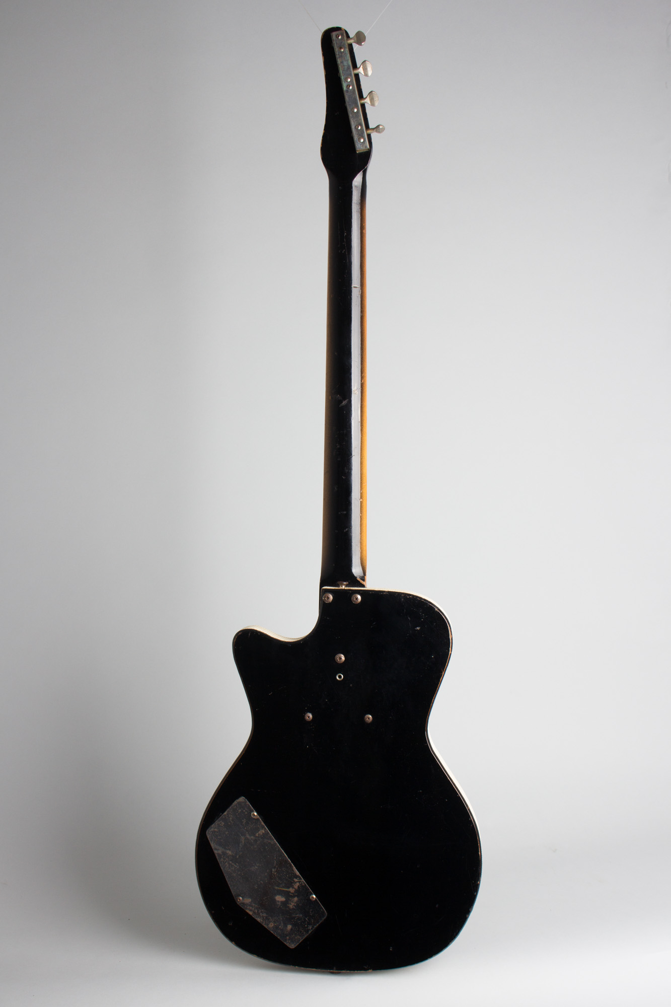 Silvertone Model 1444 Model Electric Bass Guitar, made by Danelectro (1965), made in Neptune, NJ, black lacquer finish, masonite and pine body, poplar neck with rosewood fingerboard, black gig bag case.