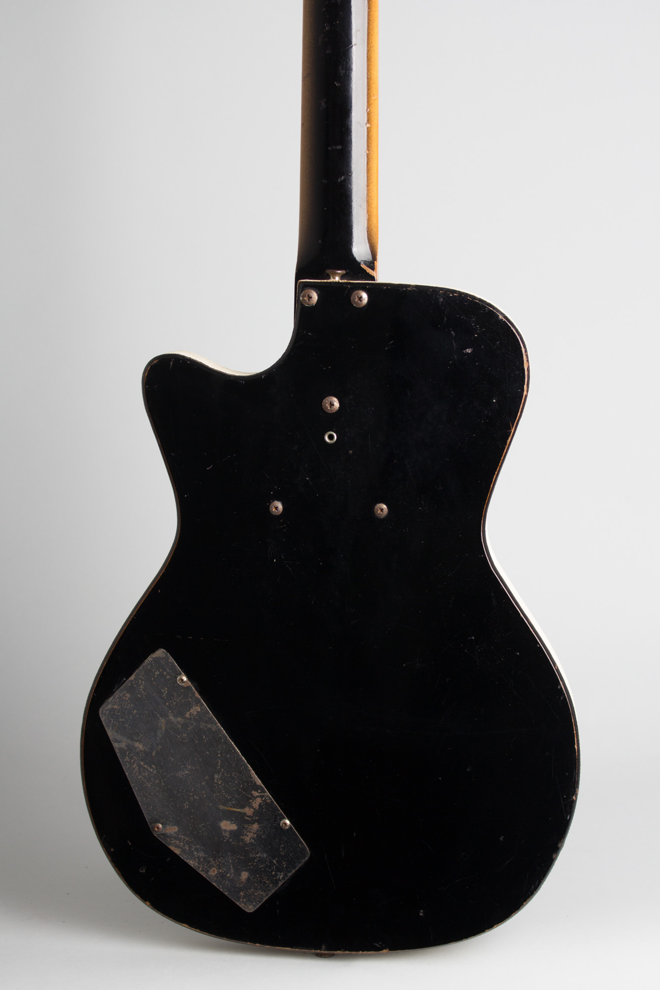 There is some noticeable corrosion to the metal parts on the back, while those on the front remain comparatively clean. The neck is quite straight and the frets have recently been crowned making this an excellent player notwithstanding some battle scars. Not the cleanest of these we have had but a nice player's example nonetheless. Very Good Condition.