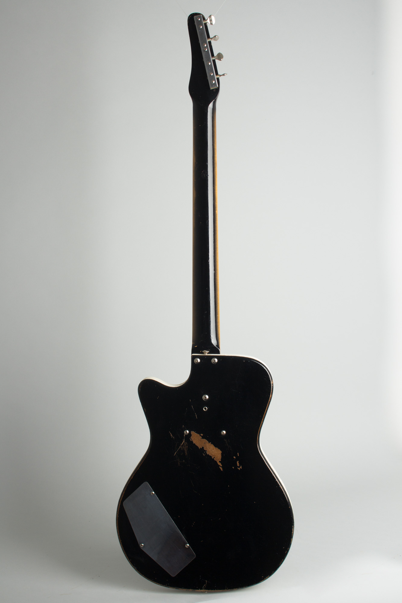 Silvertone Model 1444 Model Electric Bass Guitar, made by Danelectro (1965), made in Neptune, NJ, serial # 3035, black lacquer finish, masonite and pine body, poplar neck with rosewood fingerboard.