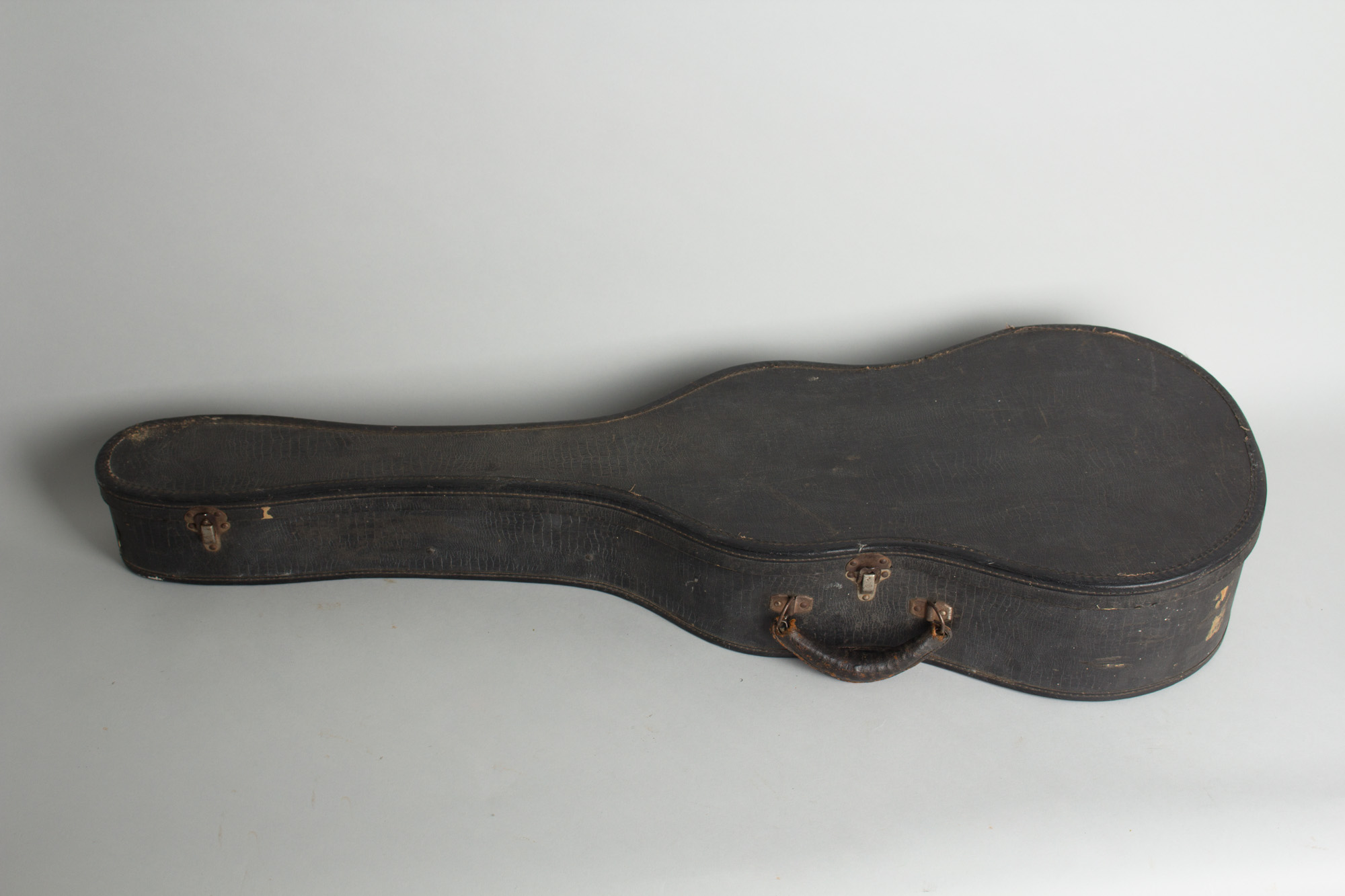 The top is very solid with no bulging often seen on this model. There are a couple of tiny sealed grain cracks behind the bridge. The back is relatively clean with again only a couple of small tight grain stresses that do not go fully through the wood. The bridge is original, as are the bar frets; the tuners are 1950s-era Waverly strips. The finish is worn down to the wood on the treble side of the back of the neck. The neck has been reset, the frets polished, and playability is excellent. This guitar is a good player's example of this early Depression-era Martin, complete in its original chipboard case which has somehow survived in relatively functional condition. Very Good + Condition.