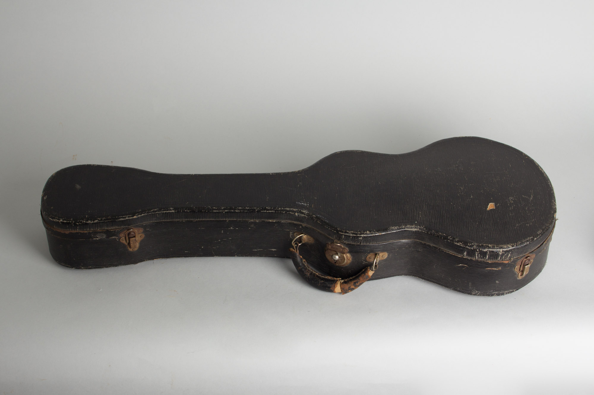 This guitar is completely original and unaltered (except the strings!), showing some fairly minor wear overall. The plated finish has a some spots of corrosion and scuffing (mostly on the face) but for the most part still shines like the bumpers on a 1955 Cadillac. Some plating has flaked off the top of the metal nut. The original hard case has some external wear and the paper-covered handle is split across the middle but it is still completely functional. We wish all 80+ year old instruments survived this well! This Silver Hawaiian is a true connoisseur's delight in a prewar Hawaiian steel and a very fine sounding old Rickenbacker. It includes a nice original blue-lined HSC with some wear but still solid. Excellent - Condition.