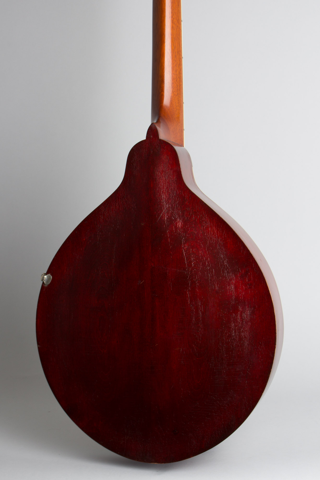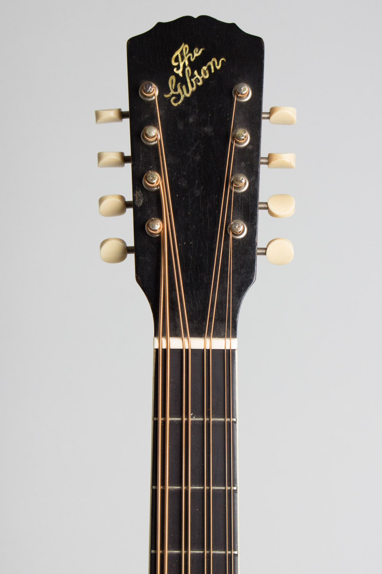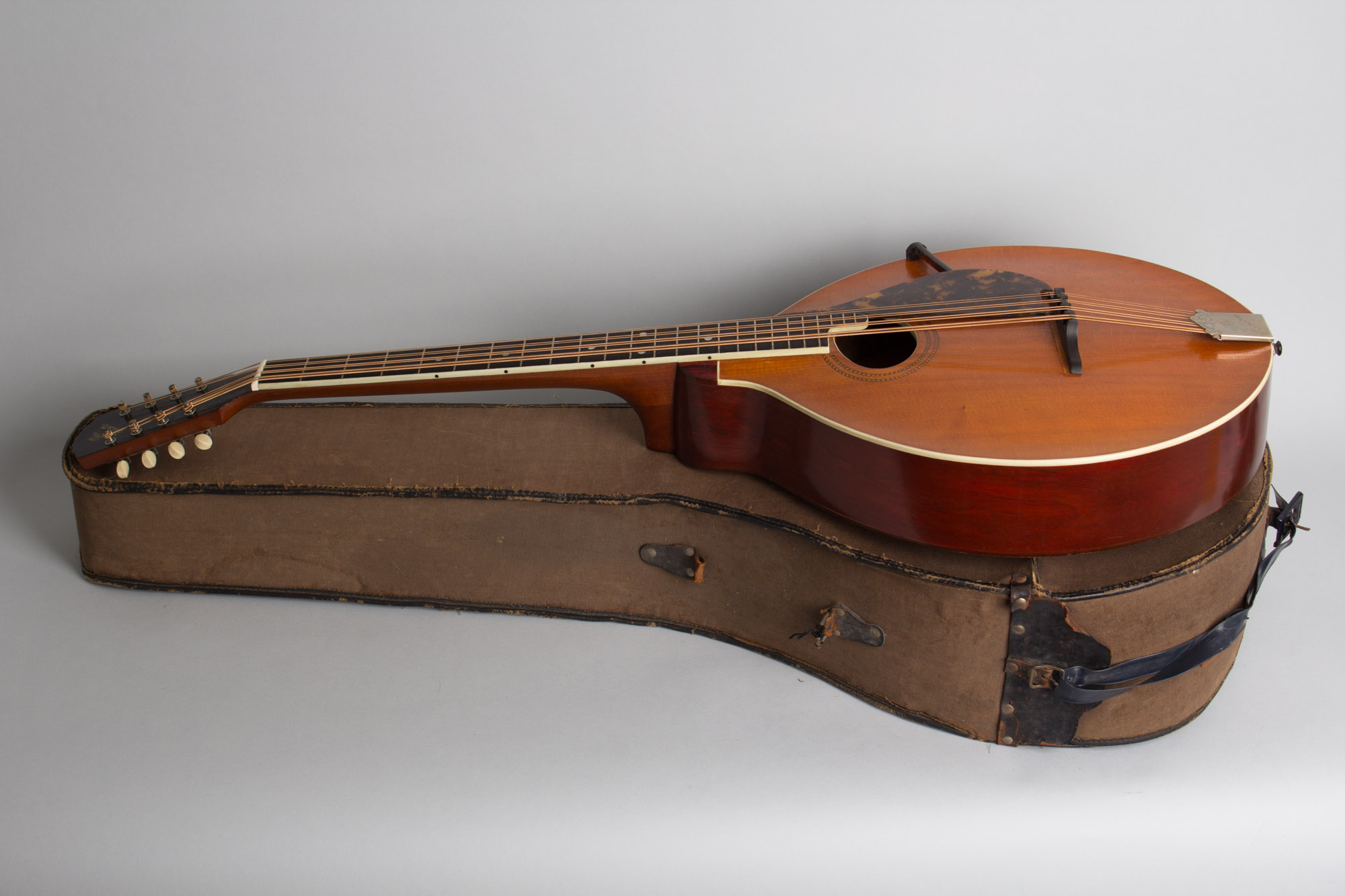 Gibson K-1 Model Carved Top Mandocello (1914), made in Kalamazoo, Michigan, serial # 29381, natural top, cherry stained back and sides finish, birch back and sides, spruce top; mahogany neck with ebony fingerboard, original brown canvas soft shell case.